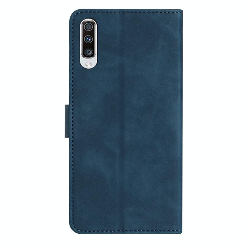 Θήκη τηλεφώνου Samsung Galaxy A50 Seven Butterflies, δερμάτινη με ανάγλυφο σχέδιο (Μπλε)