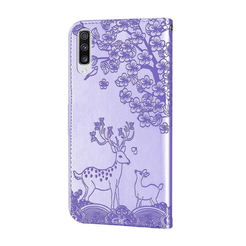 Για Samsung Galaxy A50 Sika Deer ανάγλυφο μοτίβο οριζόντια Flip PU δέρμα υπόθεση με θήκη & υποδοχή για κάρτες & πορτοφόλι & πλαίσιο φωτογραφιών (μωβ)