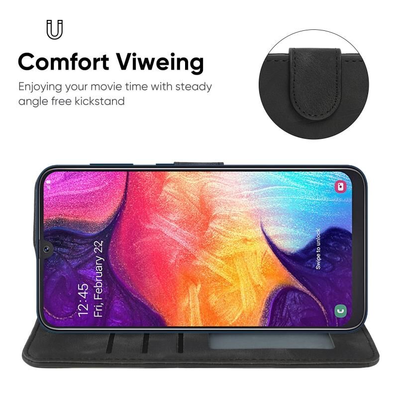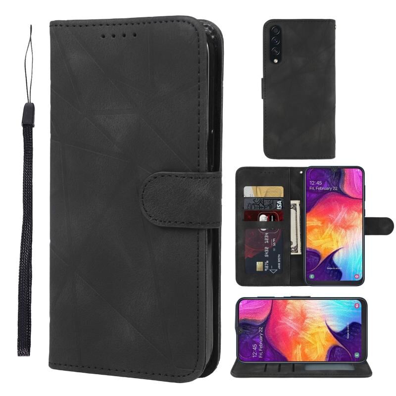 Θήκη τηλεφώνου Samsung Galaxy A50 με δερμάτινη υφή, γεωμετρικά σχέδια (Μαύρο)