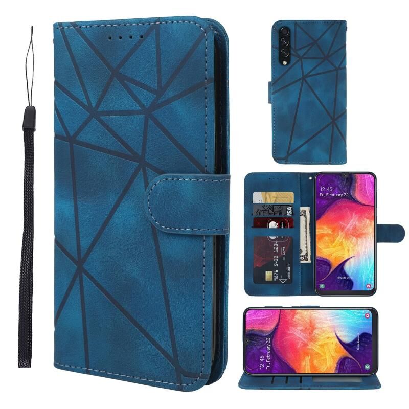 Θήκη τηλεφώνου Samsung Galaxy A50 με δερμάτινη υφή, γεωμετρικά σχέδια (Μαύρο)