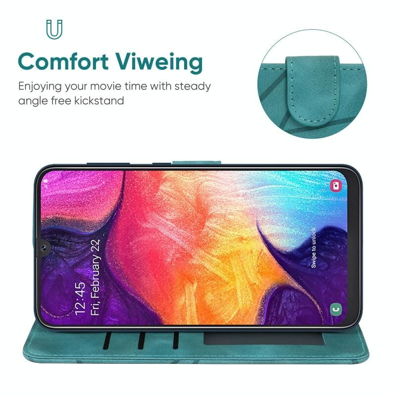 Θήκη τηλεφώνου Samsung Galaxy A50 με δερμάτινη υφή, γεωμετρικά σχέδια (Μαύρο)