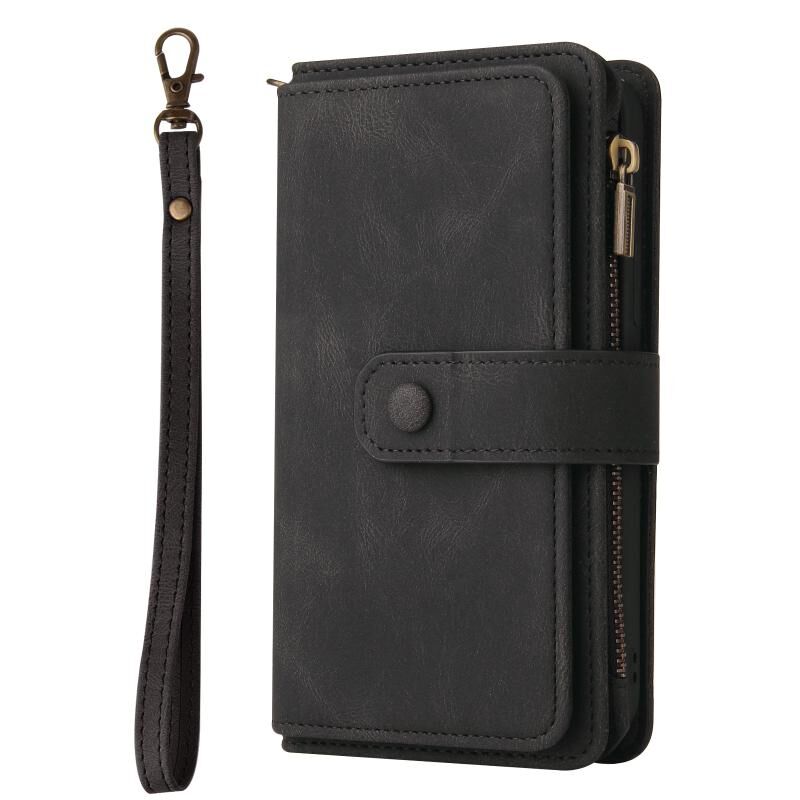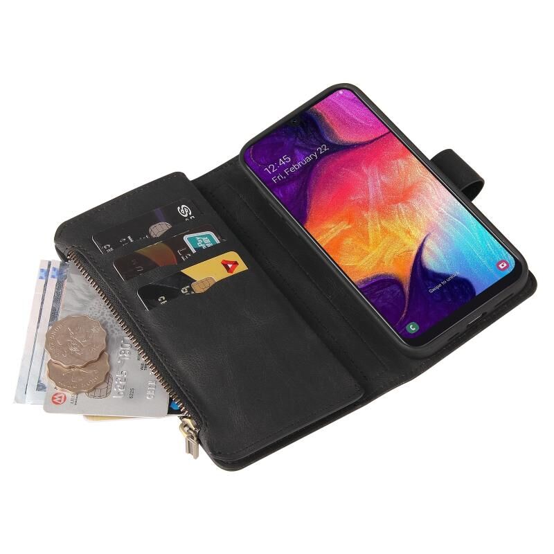 Για το Samsung Galaxy A50 Skin Feel PU + TPU Οριζόντια Flip δερμάτινη θήκη με υποδοχή & 15 κάρτες Slot & πορτοφόλι & φερμουάρ τσέπη & Lanyard (Μαύρο)