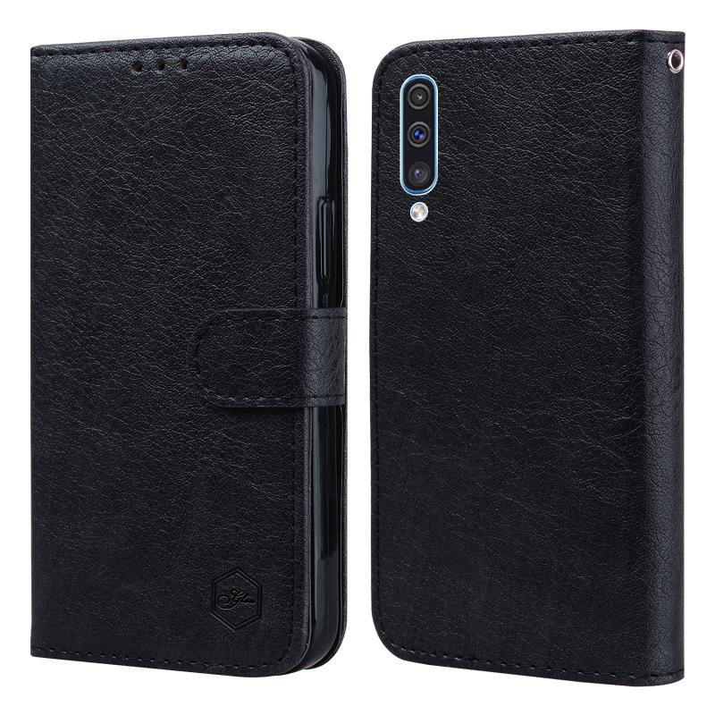 For Samsung Galaxy A50 Skin Feeling Oil Leather Texture PU + TPU Phone Case(Black)