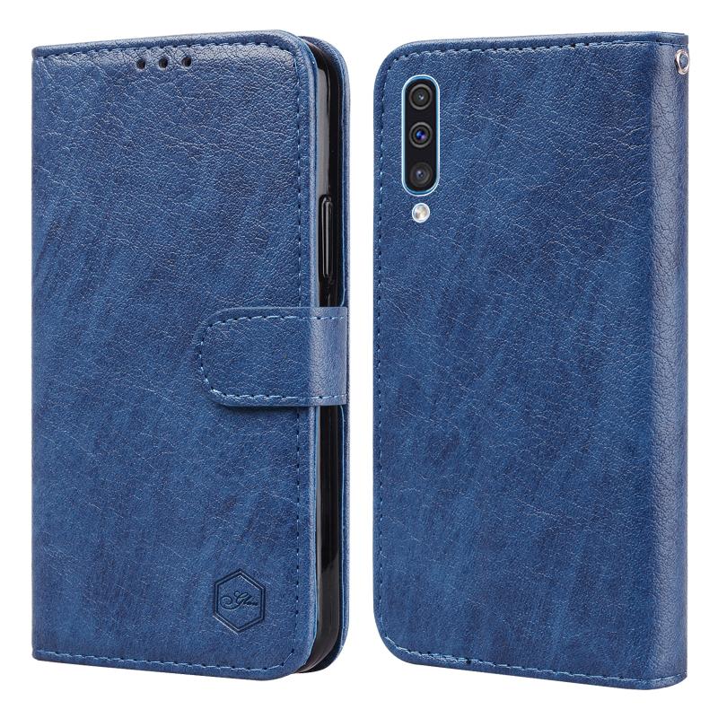 For Samsung Galaxy A50 Skin Feeling Oil Leather Texture PU + TPU Phone Case(Dark Blue)