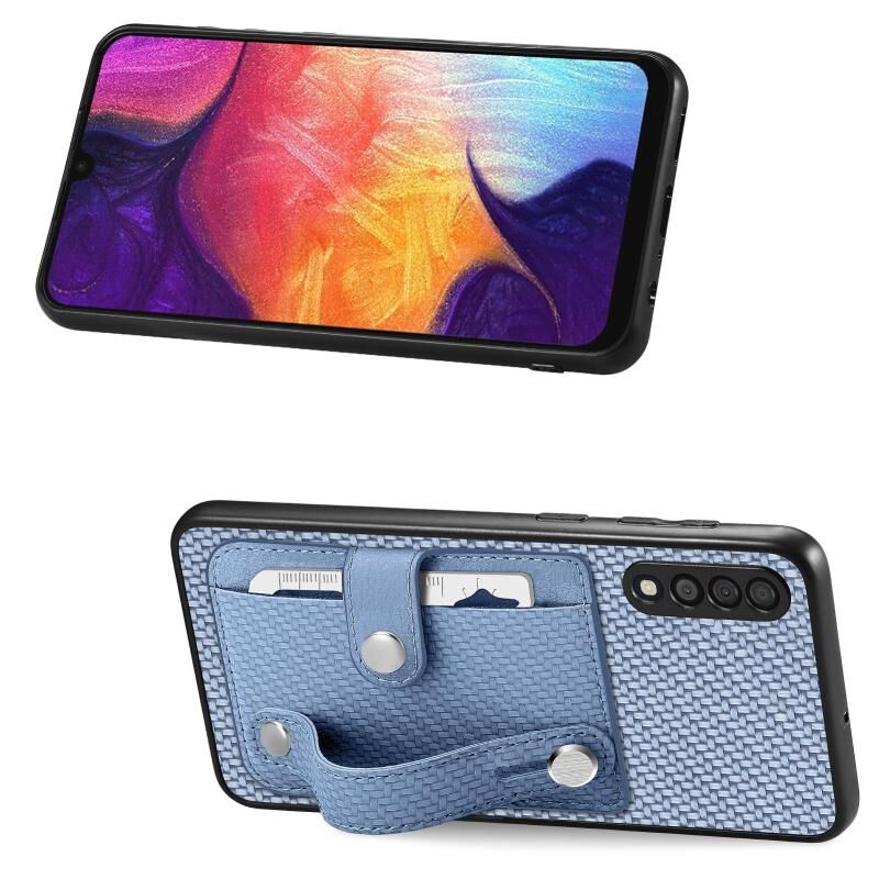 Για Samsung Galaxy A50 Wristband Kickstand Wallet πίσω υπόθεση τηλεφώνου με μαχαίρι εργαλείο (μπλε)