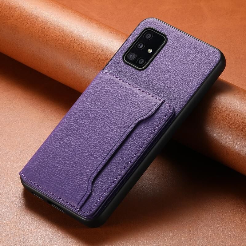 Θήκη κινητού τηλεφώνου Samsung Galaxy A51 4G με σχέδιο τσάντας κάρτας υφής μοσχαριού, πλήρης κάλυψη (Μωβ)