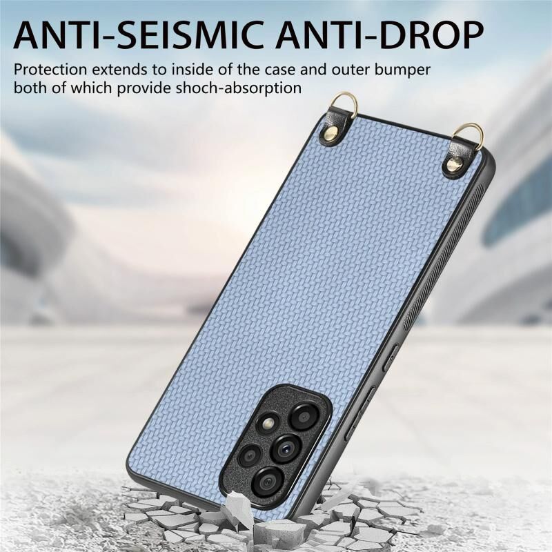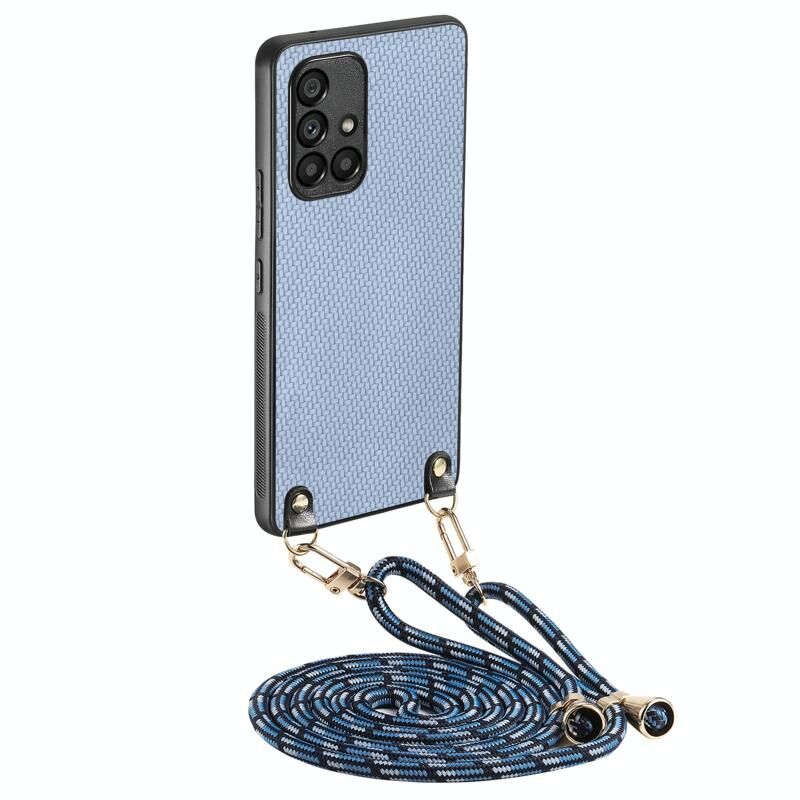 Για Samsung Galaxy A51 4G Carbon Fiber Texture δέρμα πίσω κάλυμμα τηλέφωνο υπόθεση με λουράκι σταυρού (μπλε)