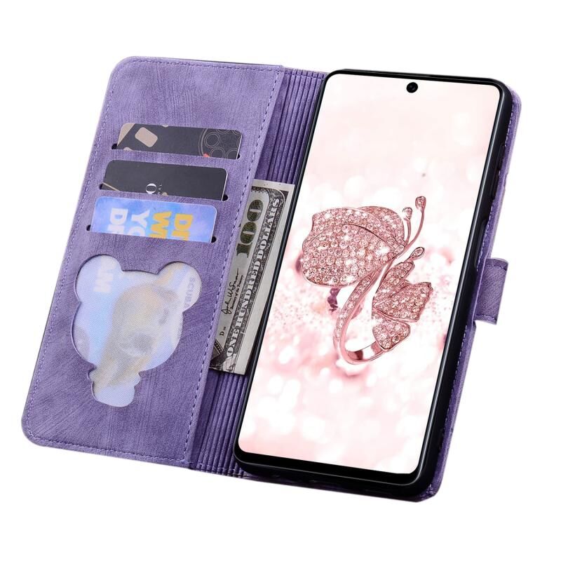 Θήκη τηλεφώνου από δέρμα με ανάγλυφο σχέδιο καρτούν Sakura Cat για Samsung Galaxy A51 4G (Κόκκινο Ρόδο)