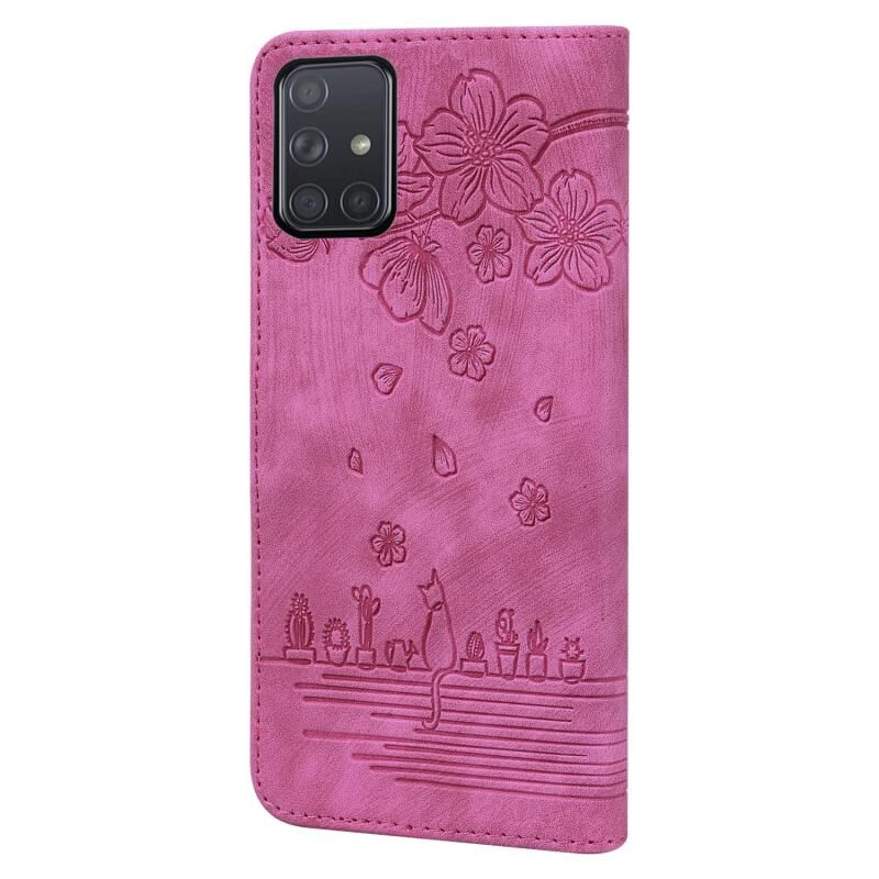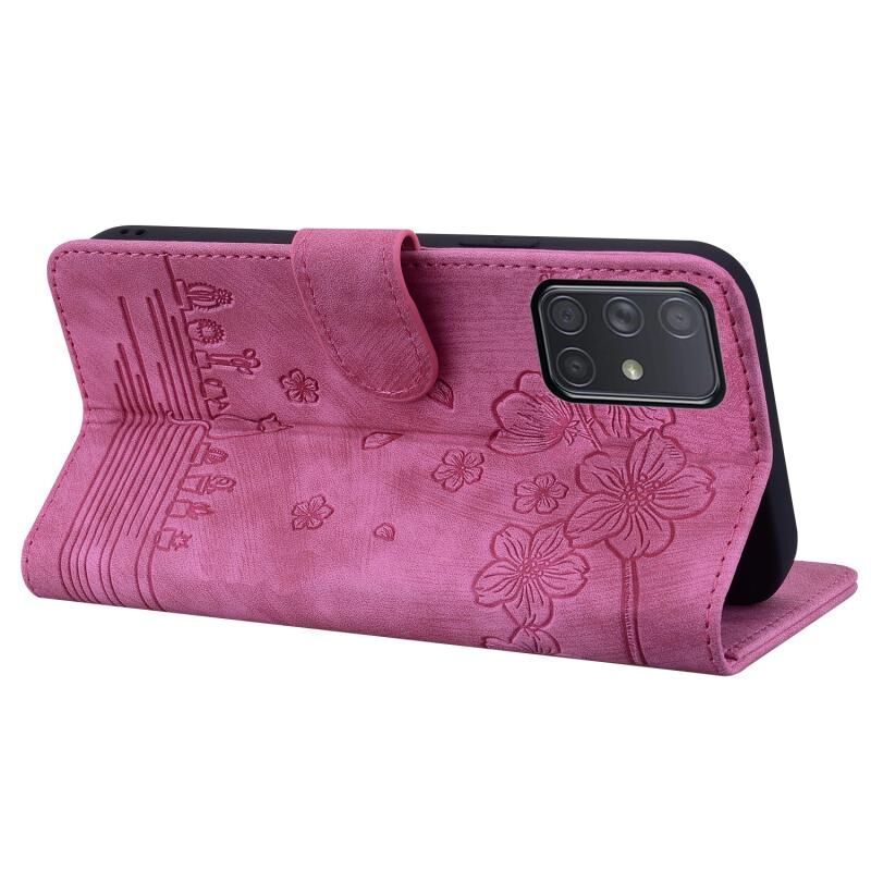 Θήκη τηλεφώνου από δέρμα με ανάγλυφο σχέδιο καρτούν Sakura Cat για Samsung Galaxy A51 4G (Κόκκινο Ρόδο)