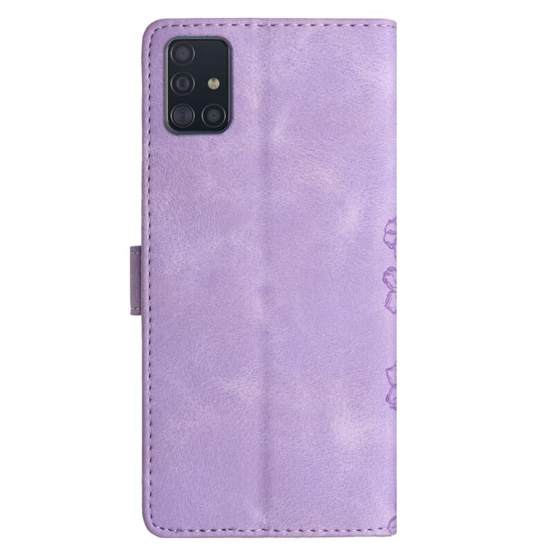 Θήκη τηλεφώνου Samsung Galaxy A51 4G Cherry Blossom Butterfly με ανάγλυφη υφή PU (Μωβ)