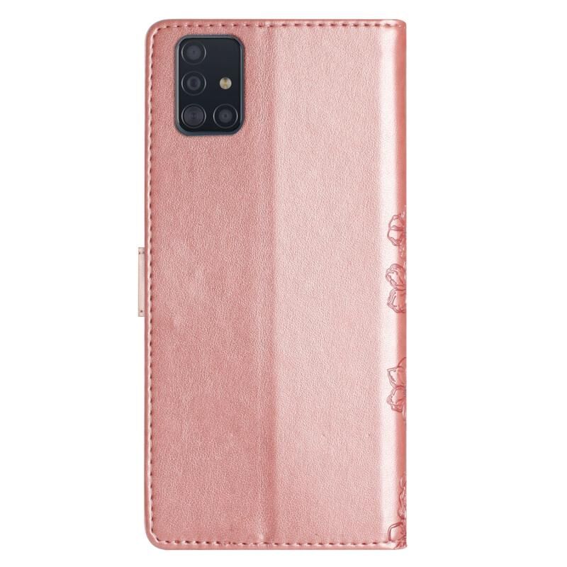 Θήκη τηλεφώνου Samsung Galaxy A51 4G Cherry Blossom Butterfly με ανάγλυφη υφή PU (Ροζ χρυσός)