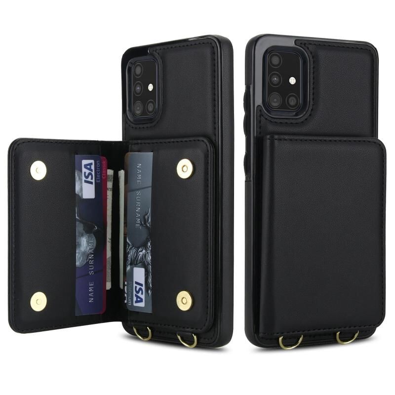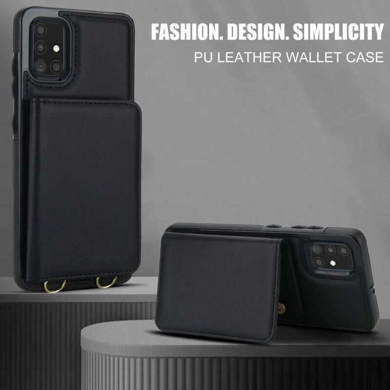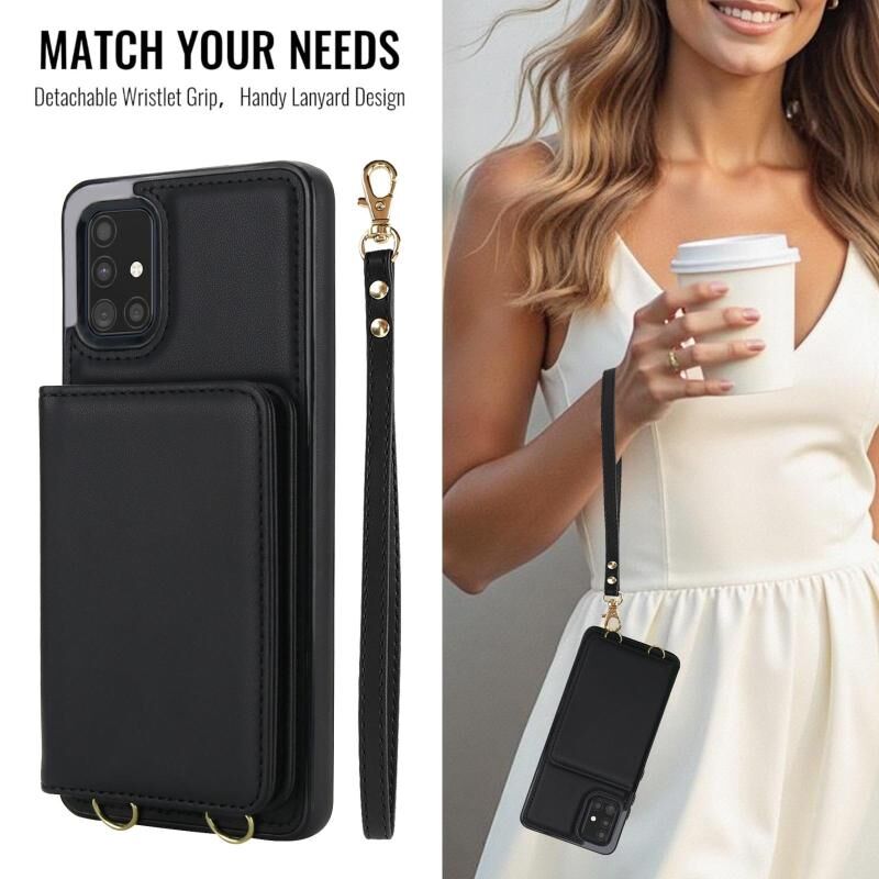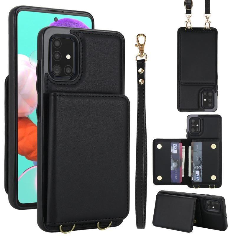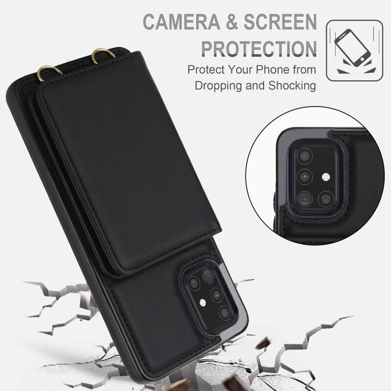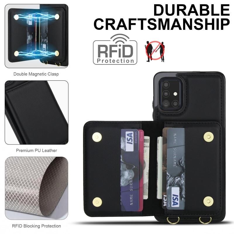 For Samsung Galaxy A51 4G Crossbody Dual-buckle Wallet RFID Back Leather Phone Case(Black)