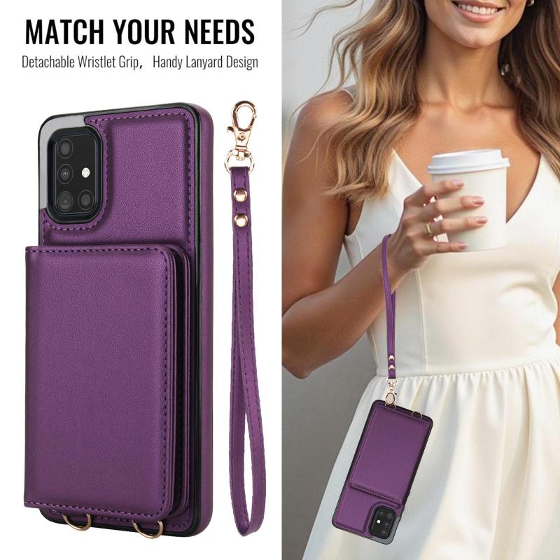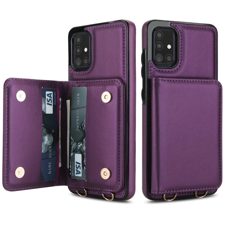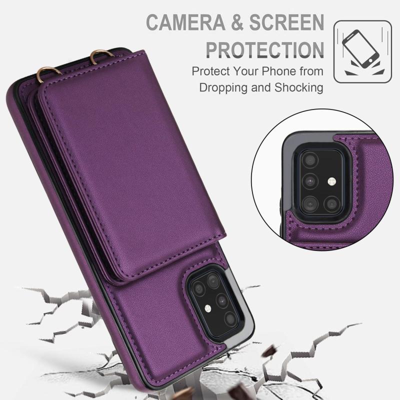 For Samsung Galaxy A51 4G Crossbody Dual-buckle Wallet RFID Back Leather Phone Case(Dark Purple)