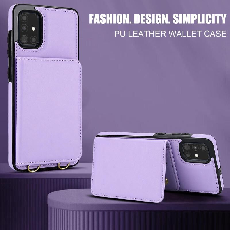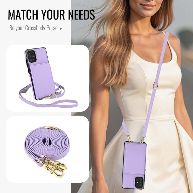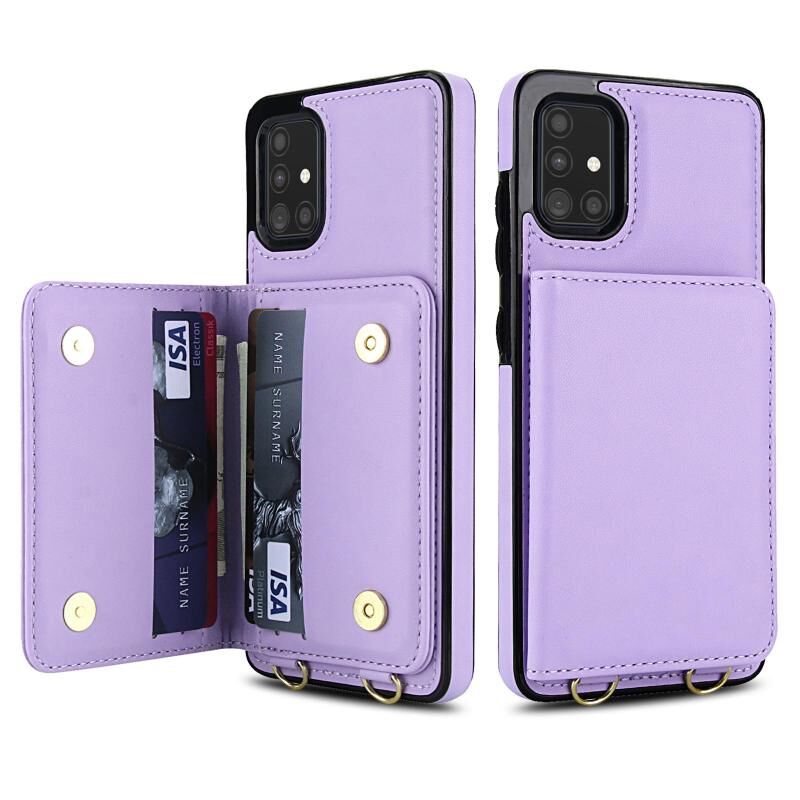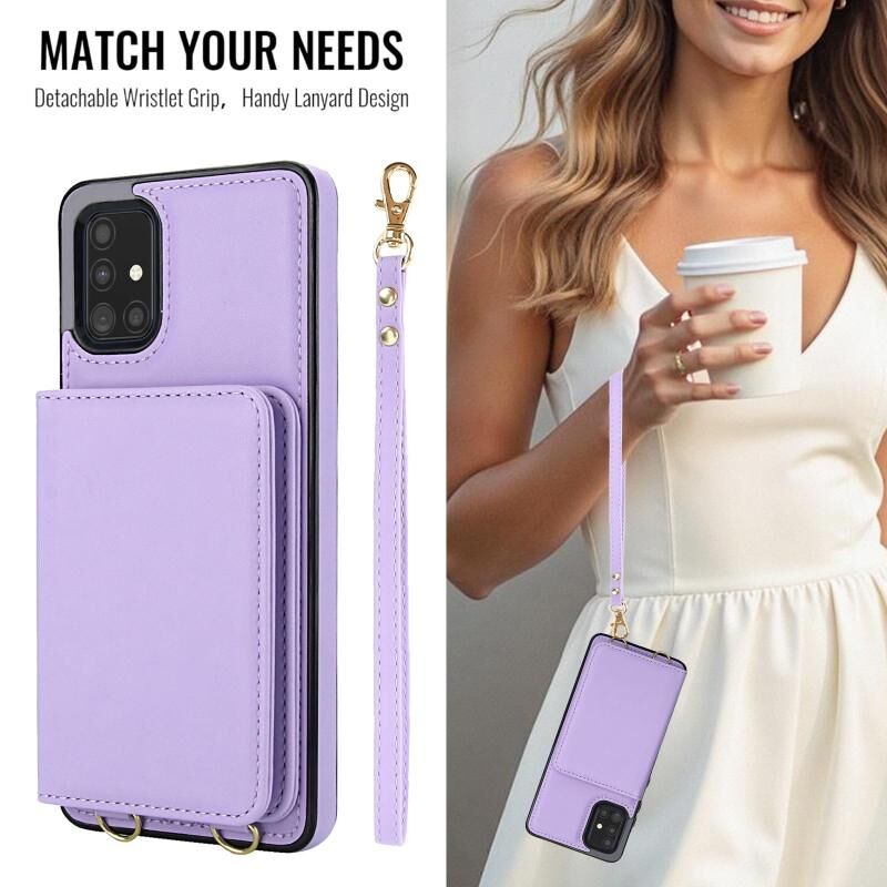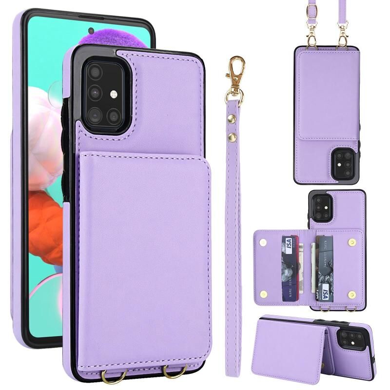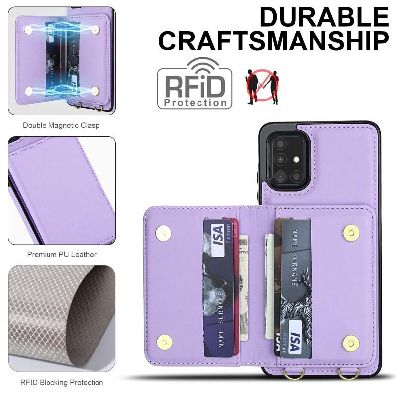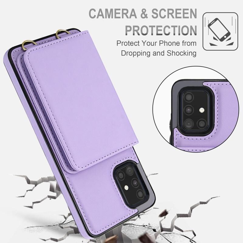 For Samsung Galaxy A51 4G Crossbody Dual-buckle Wallet RFID Back Leather Phone Case(Light Purple)