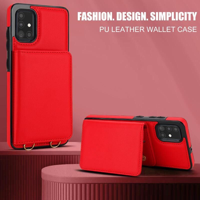 For Samsung Galaxy A51 4G Crossbody Dual-buckle Wallet RFID Back Leather Phone Case(Red)