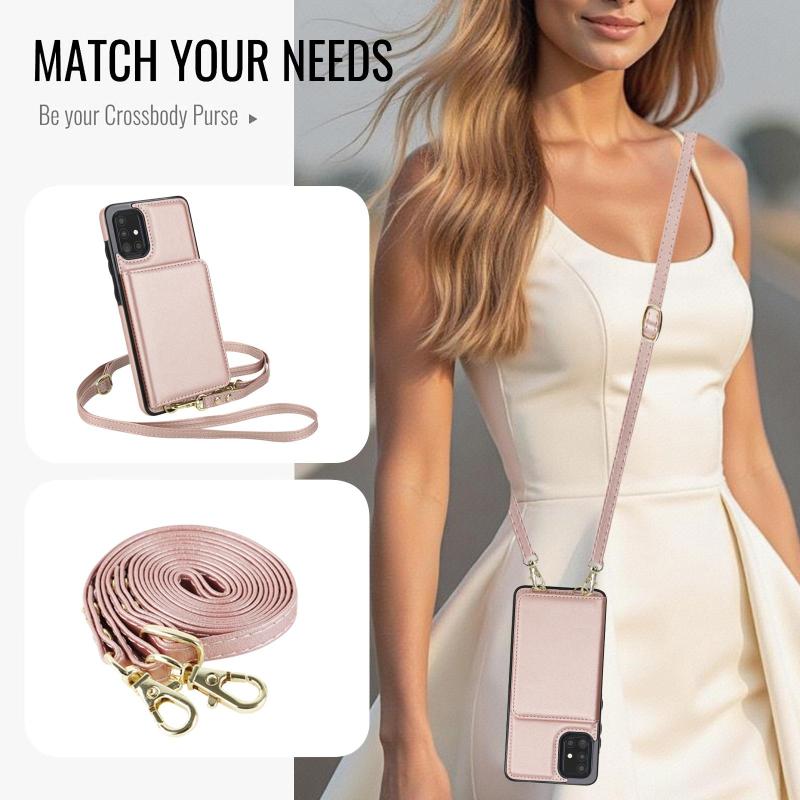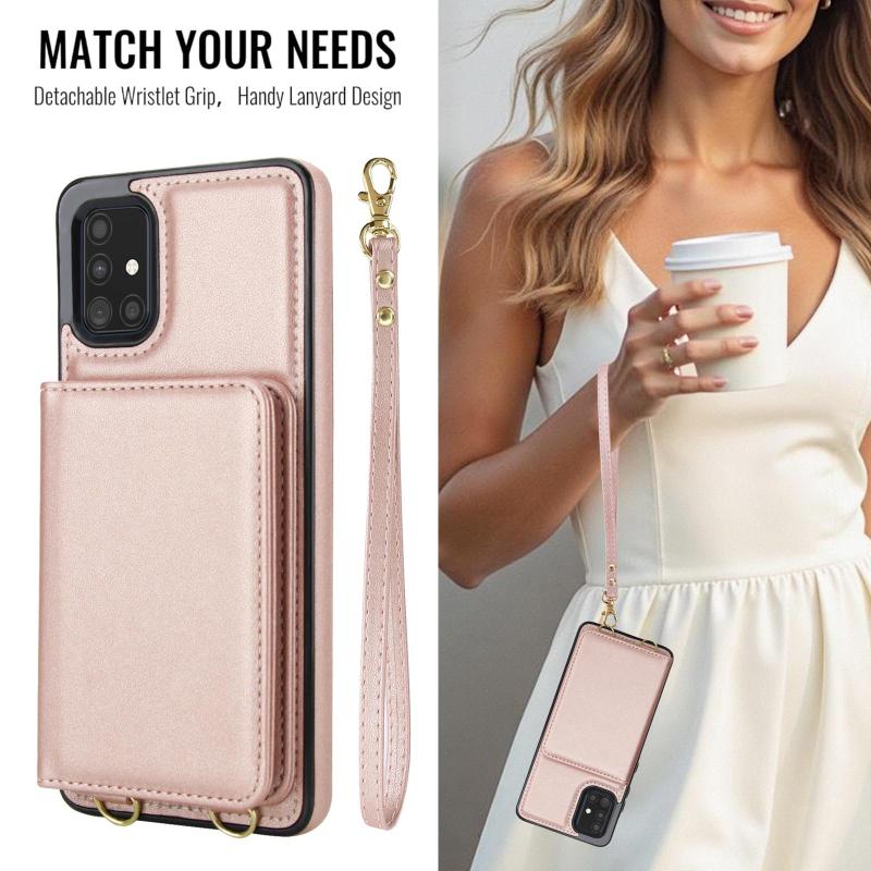 For Samsung Galaxy A51 4G Crossbody Dual-buckle Wallet RFID Back Leather Phone Case(Rose Gold)