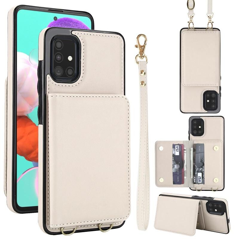 For Samsung Galaxy A51 4G Crossbody Dual-buckle Wallet RFID Back Leather Phone Case(White)