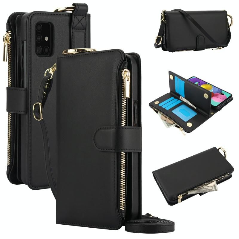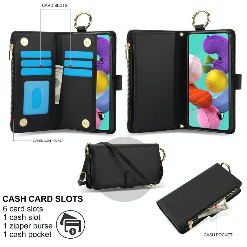 Για Samsung Galaxy A51 4G Δαχτυλίδι Crossbody Πολυλειτουργική θήκη τηλεφώνου Πορτοφόλι Δερμάτινη(Μαύρο)