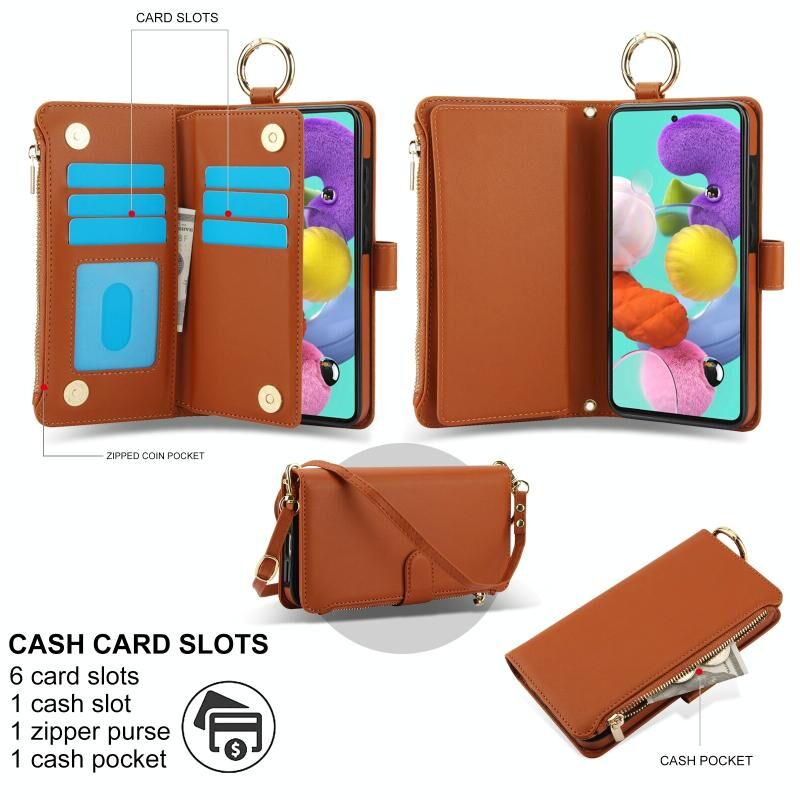 Για Samsung Galaxy A51 4G Δαχτυλίδι Crossbody Πολυλειτουργική θήκη τηλεφώνου δερμάτινο πορτοφόλι (καφέ)
