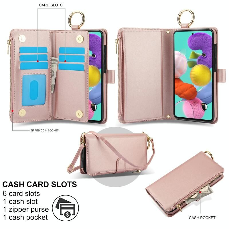 Για Samsung Galaxy A51 4G Δαχτυλίδι Crossbody Πολυλειτουργική θήκη τηλεφώνου πορτοφόλι δέρμα (ροζ χρυσό)