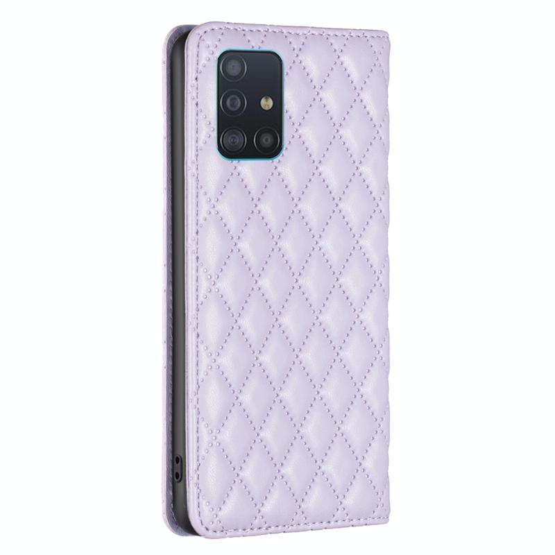 Θήκη τηλεφώνου Samsung Galaxy A51 4G, Δερμάτινη, Πτυσσόμενη, με Μαγνητικό Κλείσιμο και Διαμαντένιο Πλέγμα (Μωβ)