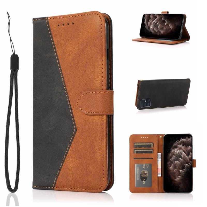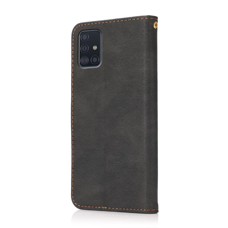 Θήκη τηλεφώνου δερμάτινη με διχρωμία ραφής για Samsung Galaxy A51 4G (Μαύρο καφέ)