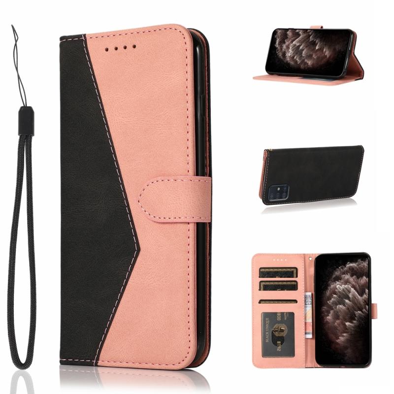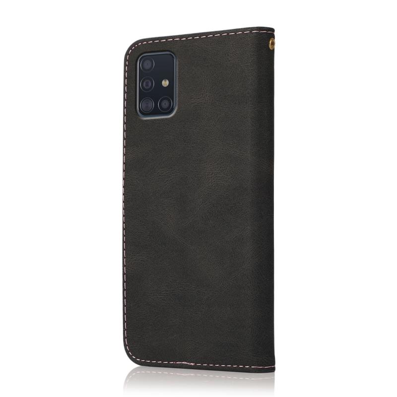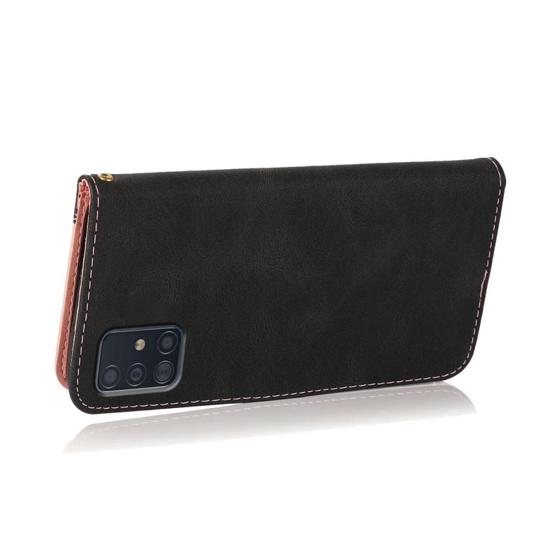 Θήκη τηλεφώνου δερμάτινη με διχρωμία ραφής για Samsung Galaxy A51 4G (Μαύρο Ροζ Χρυσό)