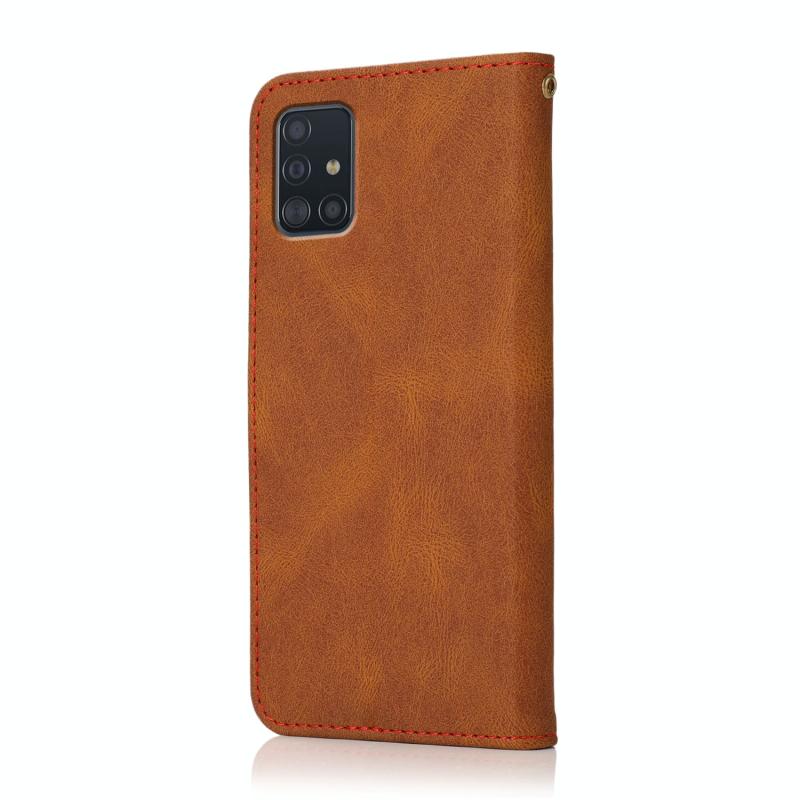 Θήκη τηλεφώνου δερμάτινη με διχρωμία ραφής για Samsung Galaxy A51 4G (Καφέ-κόκκινο)