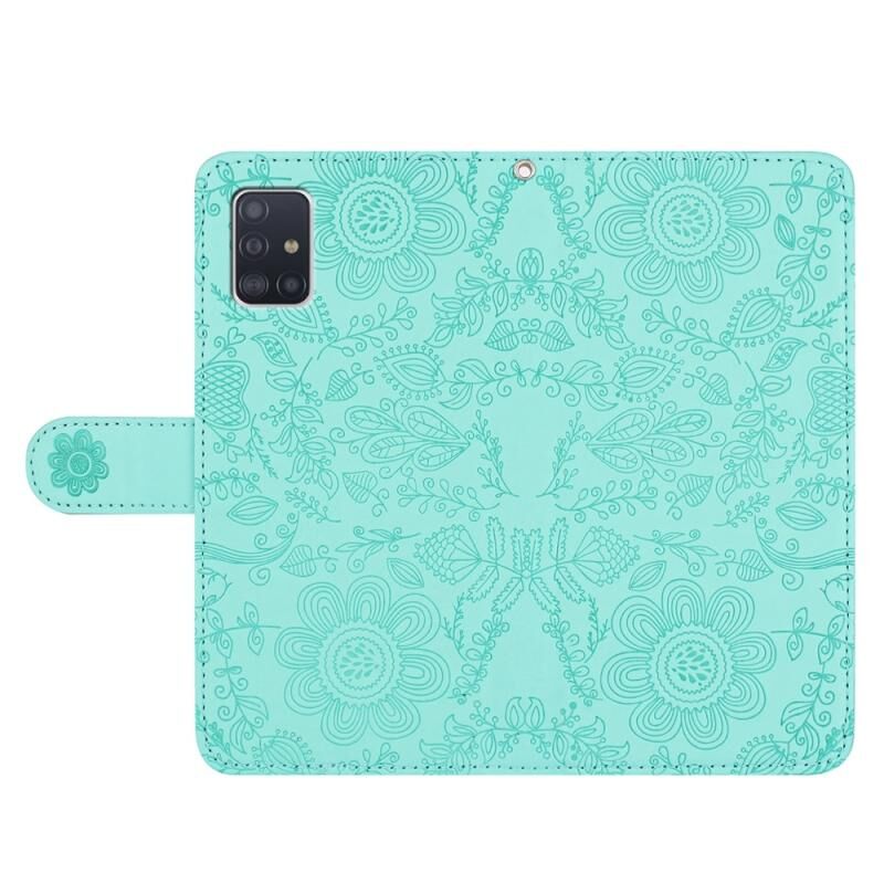 Για Samsung Galaxy A51 4G Floral ανάγλυφο μοτίβο δερμάτινη θήκη τηλεφώνου (ανοιχτό πράσινο)