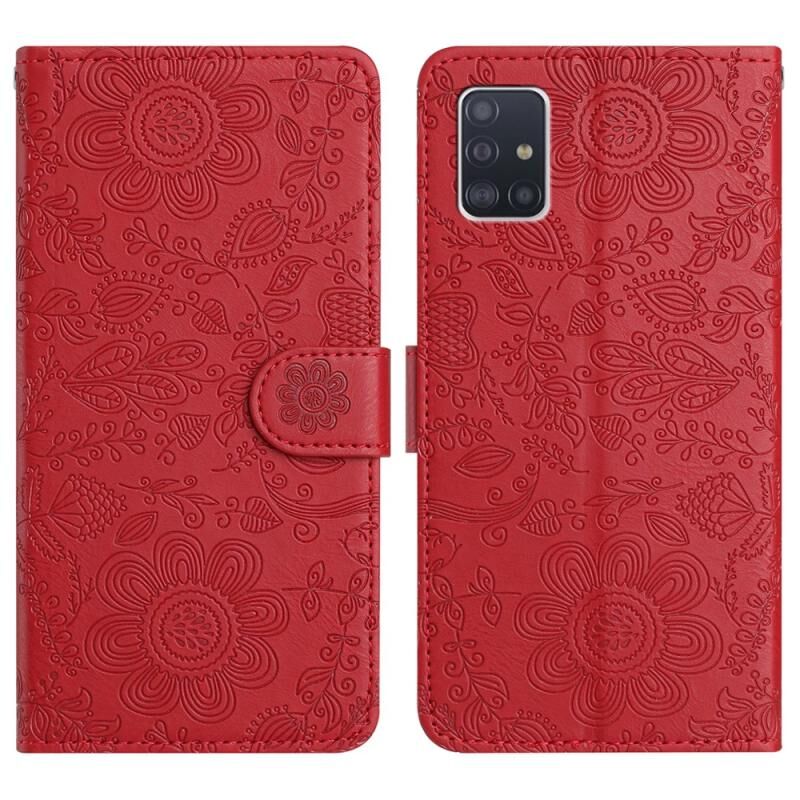 Για Samsung Galaxy A51 4G Floral ανάγλυφο μοτίβο δερμάτινη θήκη τηλεφώνου (Κόκκινο)