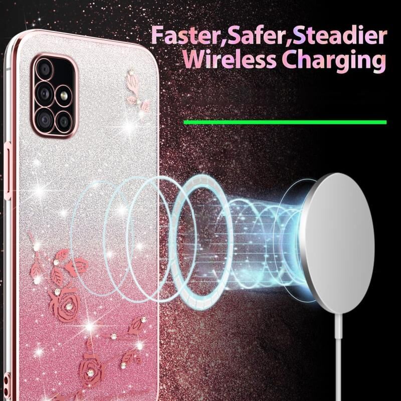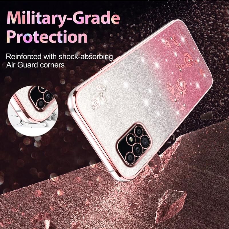 Θήκη τηλεφώνου για Samsung Galaxy A51 4G, με διαβαθμισμένη λάμψη, λουλούδια και πλήρη κάλυψη (ρόζ)