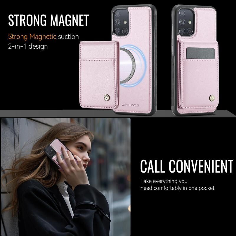 For Samsung Galaxy A51 4G JEEHOOD J06 British Style RFID MagSafe Card Bag PU Phone Case(Pink) (JEEHOOD)