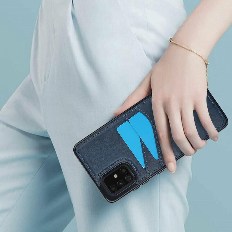 Για Samsung Galaxy A51 4G Litchi δέρμα δέρμα κάρτα υποδοχές υπόθεση τηλεφώνου (μπλε)