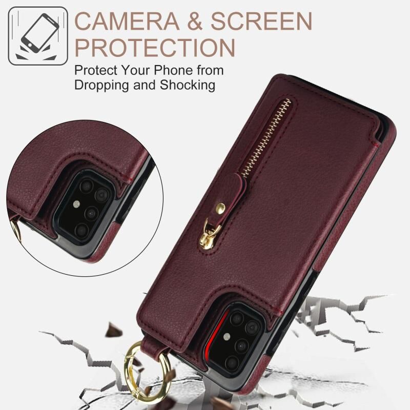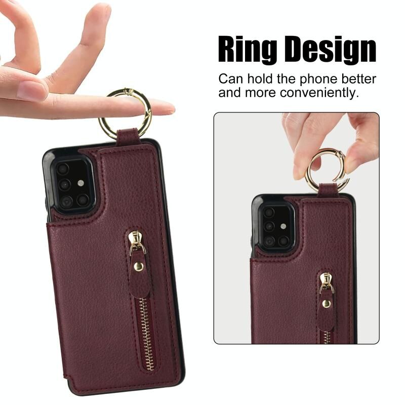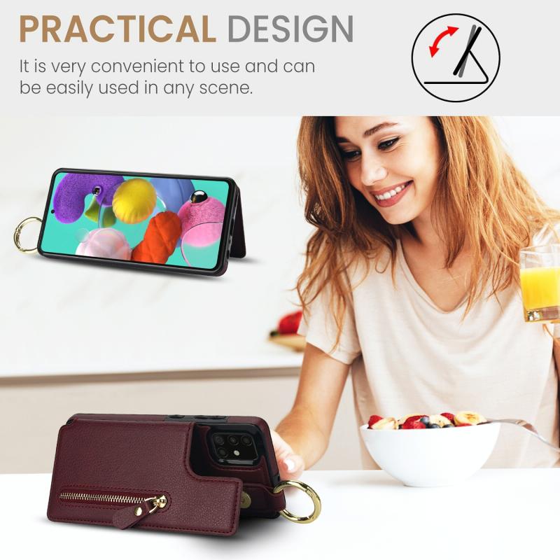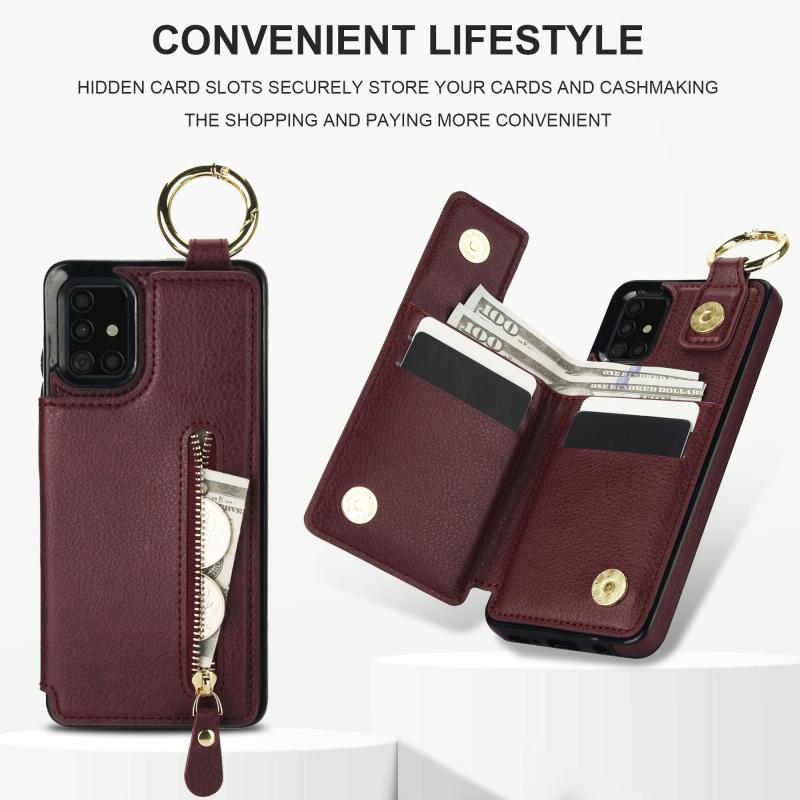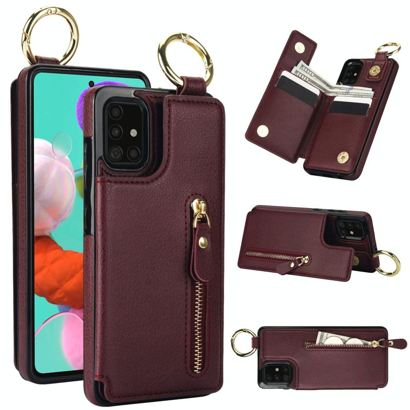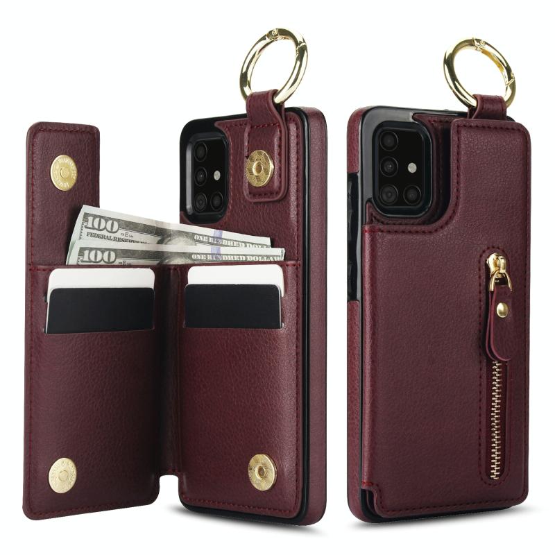 For Samsung Galaxy A51 4G Litchi Texture Zipper Double Buckle Card Bag Phone Case(Maroon Red)