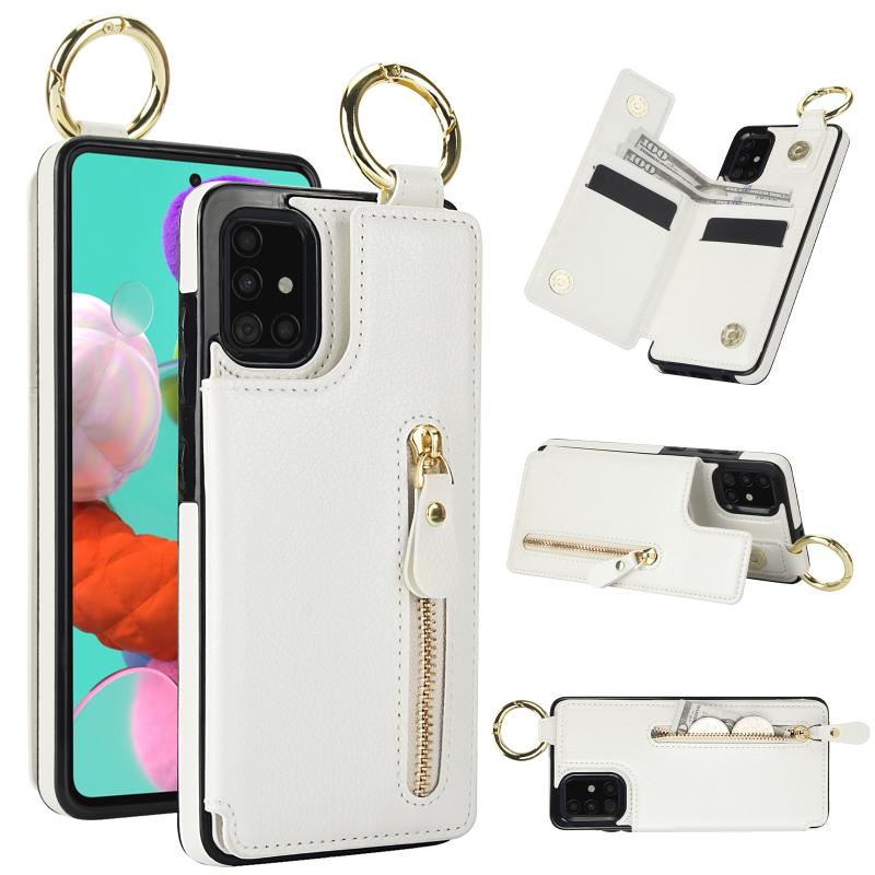 For Samsung Galaxy A51 4G Litchi Texture Zipper Double Buckle Card Bag Phone Case(White)