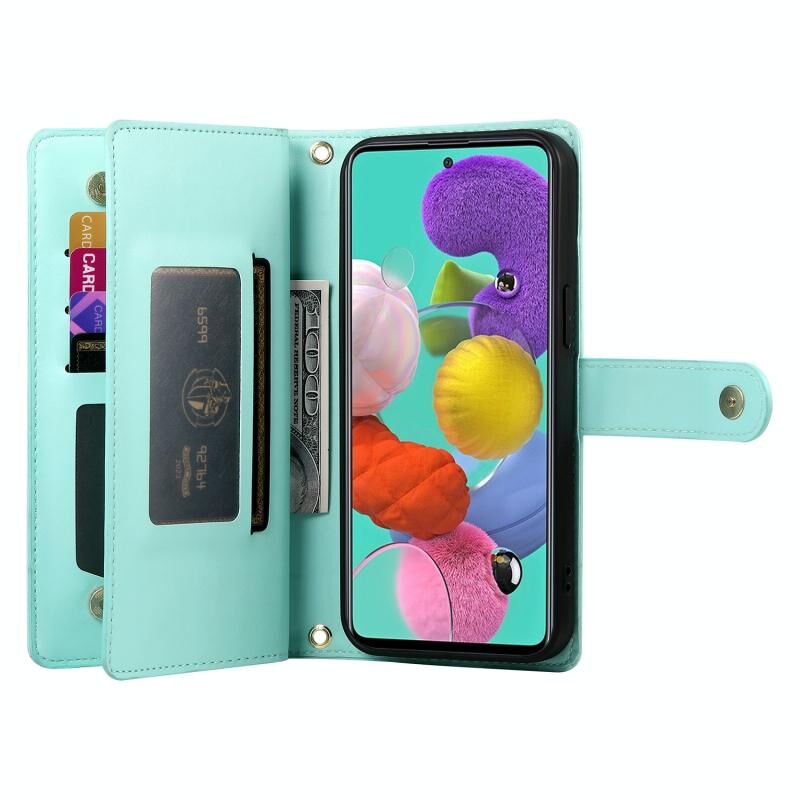 Για Samsung Galaxy A51 4G / M40s Nine Card-slot φερμουάρ τσάντα πορτοφόλι τσάντα δερμάτινη θήκη τηλεφώνου (πράσινο μέντα)