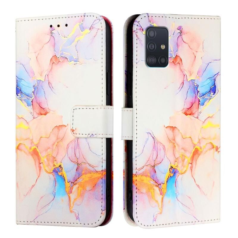 Θήκη τηλεφώνου Samsung Galaxy A51 4G / M40s PT003 με σχέδιο μάρμαρου, δερμάτινη, αναδιπλούμενη (Λευκό Μάρμαρο Γαλαξία)