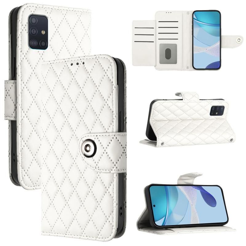 Για Samsung Galaxy A51 4G / M40s Ρομβική υφή Flip δερμάτινη θήκη τηλεφώνου με κορδόνι (λευκό)