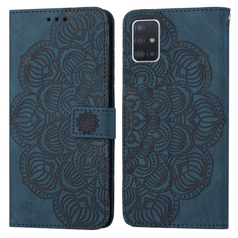 Για Samsung Galaxy A51 4G Mandala ανάγλυφο Flip υπόθεση τηλεφώνου δέρμα (μπλε)