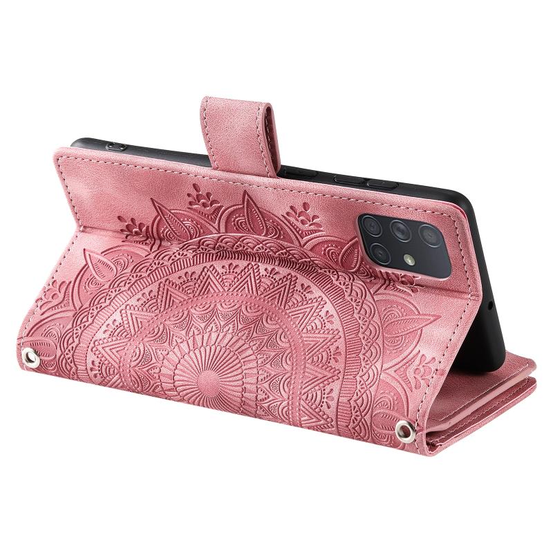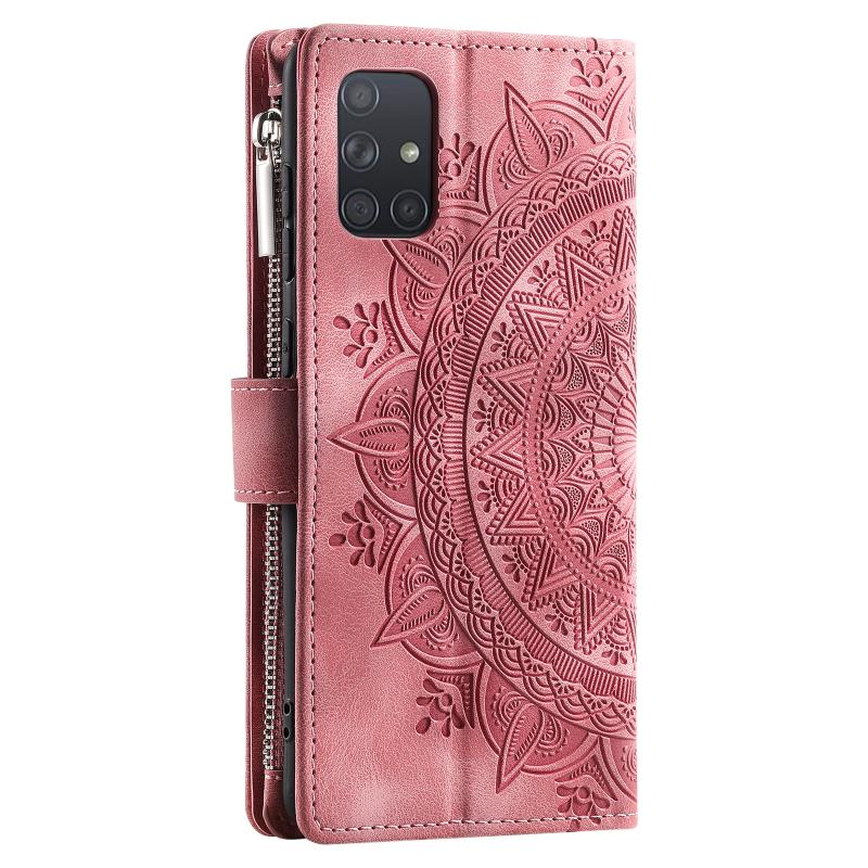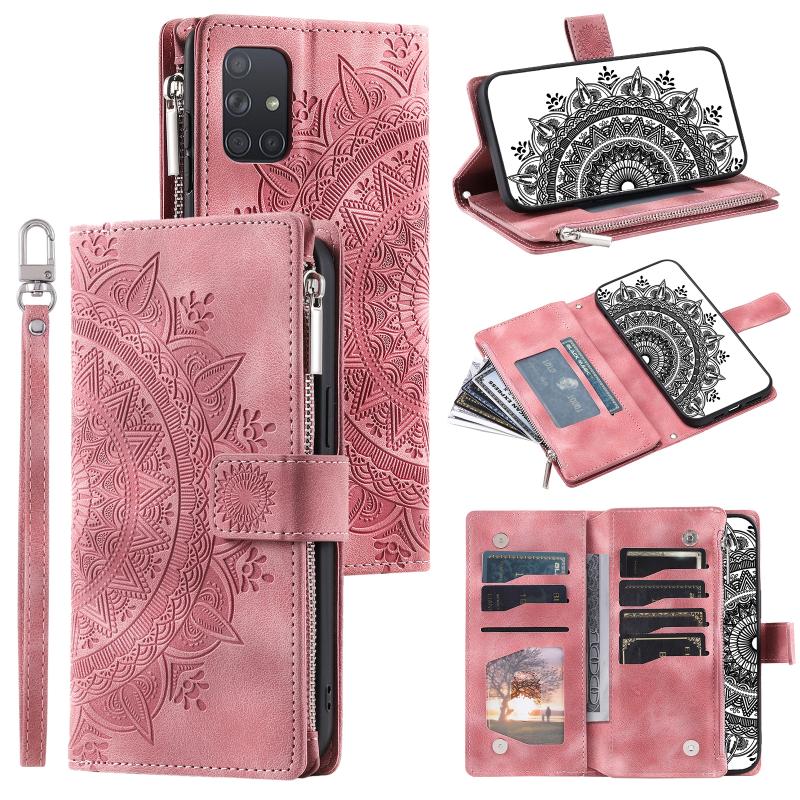For Samsung Galaxy A51 4G Multi-Card Totem Zipper Leather Phone Case(Pink)