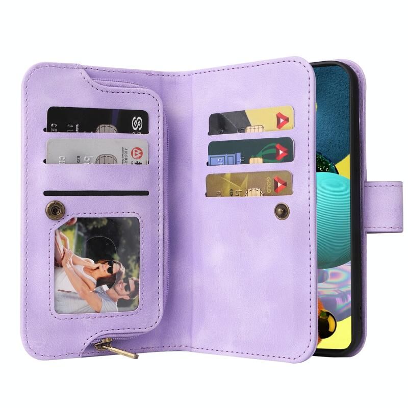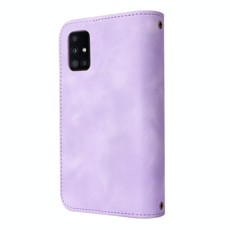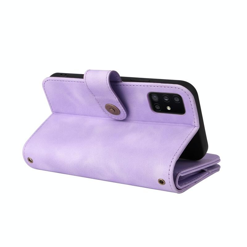 Για Samsung Galaxy A51 4G πολυλειτουργική κάρτα Slot φερμουάρ πορτοφόλι δερμάτινη θήκη τηλεφώνου (μωβ)