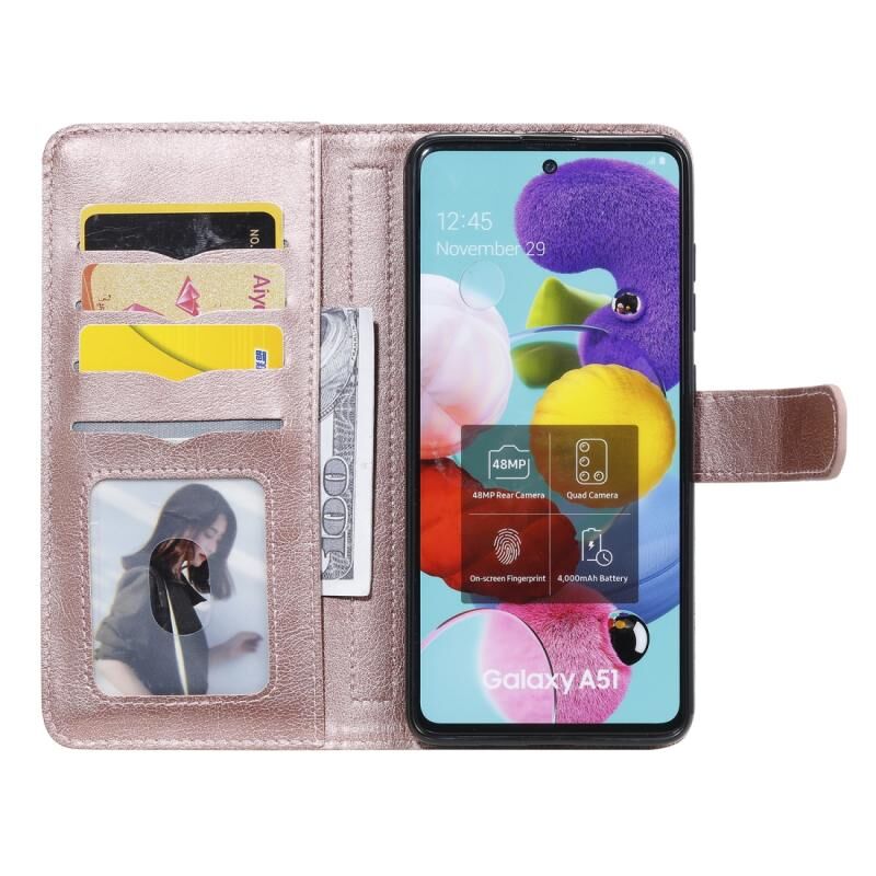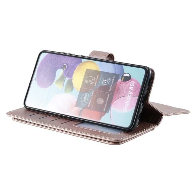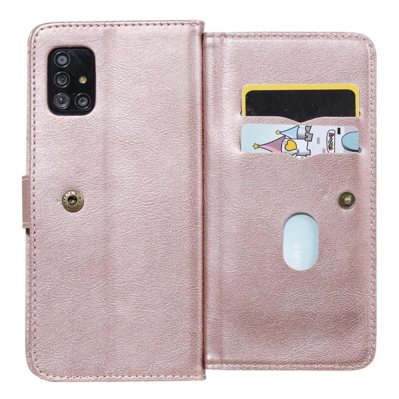 Για Samsung Galaxy A51 (4G) Πολυλειτουργική μαγνητική χάλκινη πόρπη οριζόντια Flip Solid Color δερμάτινη θήκη με 10 υποδοχές για κάρτες & πορτοφόλι & θήκη & κορνίζα φωτογραφιών (ροζ χρυσό)