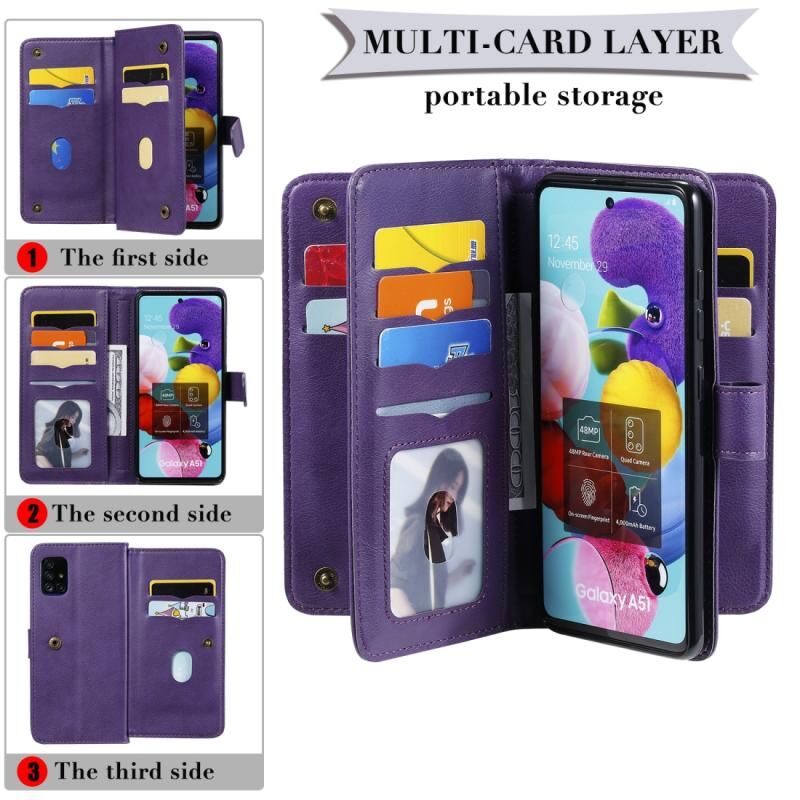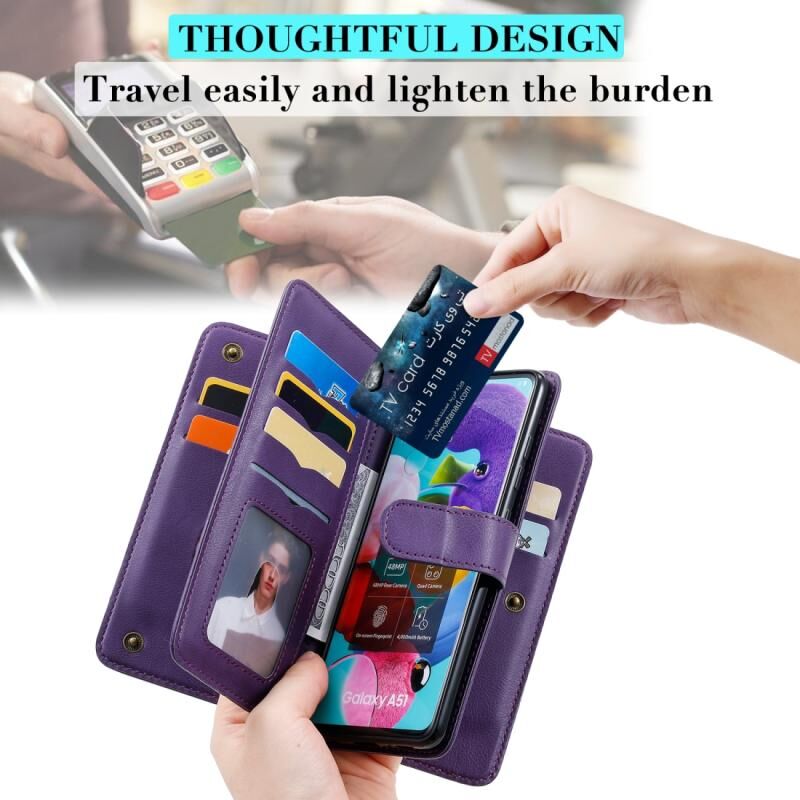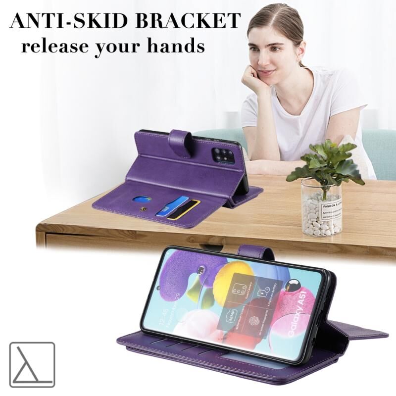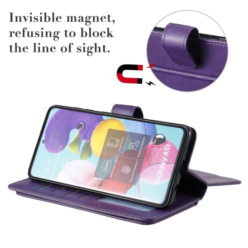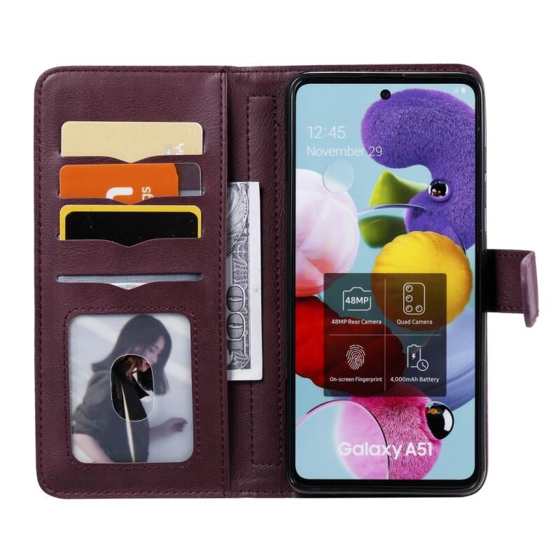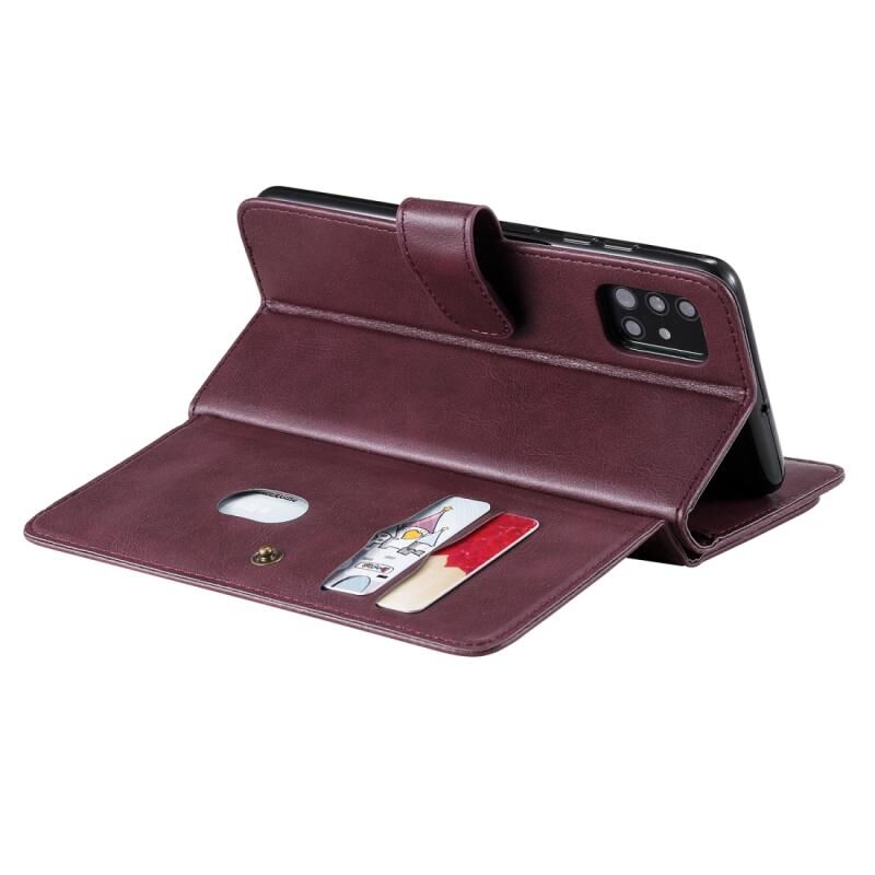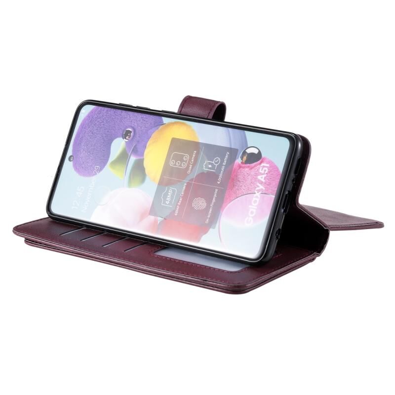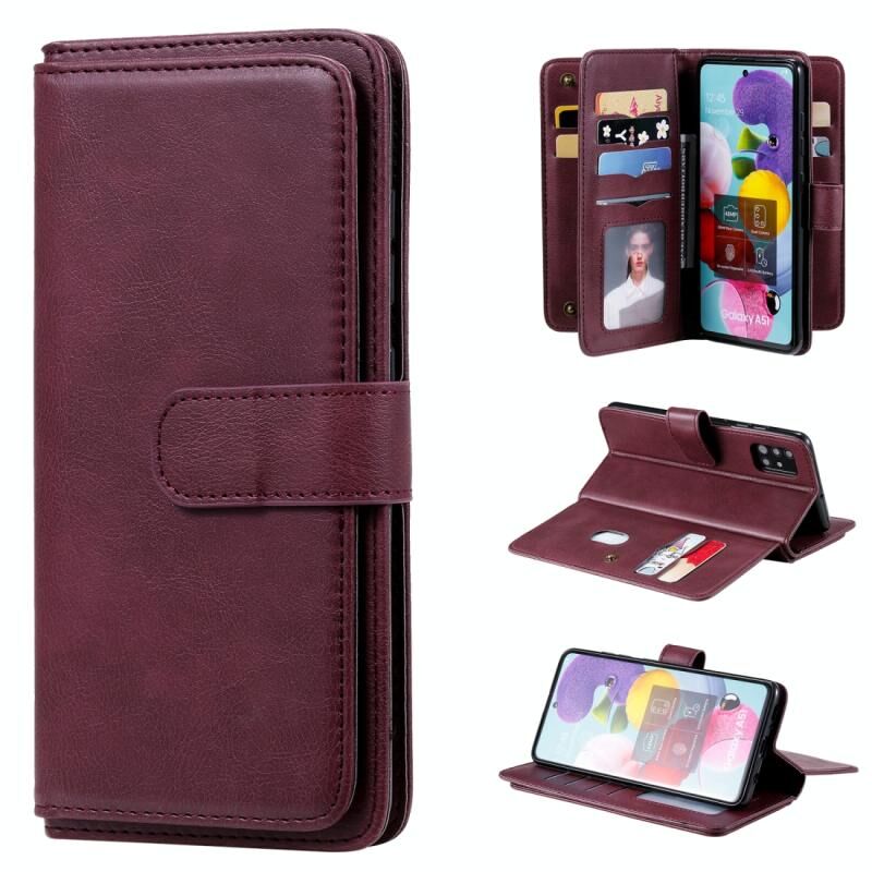 Θήκη Samsung Galaxy A51 (4G) Πολυλειτουργική Μαγνητική Θήκη από Δέρμα με Αγκράφα Χαλκού, Οριζόντια, Μονόχρωμη, με 10 Θήκες για Κάρτες & Πορτοφόλι & Στήριξη & Φωτογραφική Κορνίζα (Κόκκινο)