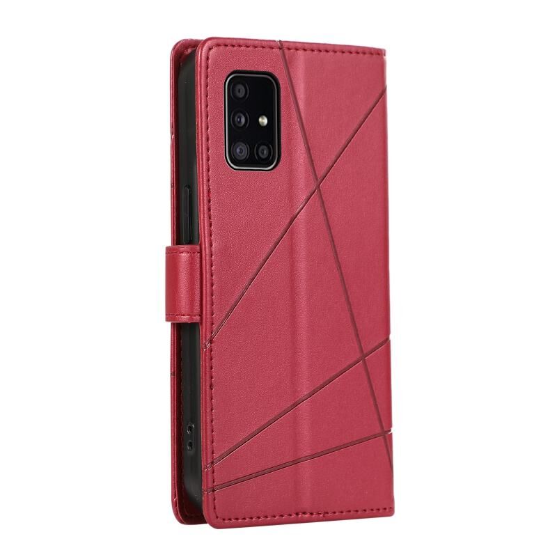 Θήκη τηλεφώνου για Samsung Galaxy A51 4G από γνήσιο δέρμα PU με ανάγλυφη υφή και λεπτή γραμμή (Μπλε)