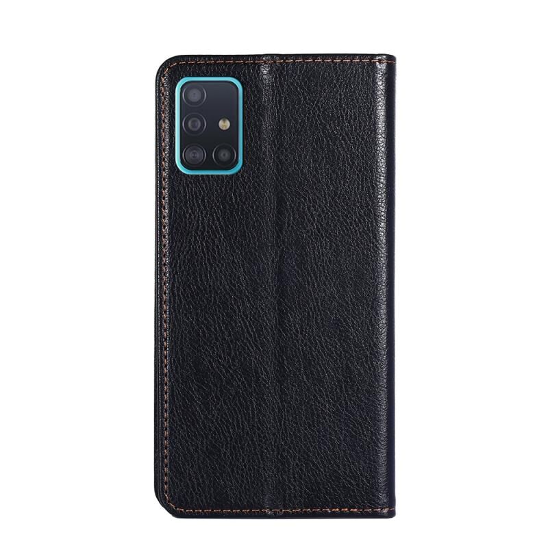Για Samsung Galaxy A51 4G PU + TPU γυαλιστερό λάδι στερεό χρώμα μαγνητική οριζόντια Flip δερμάτινη θήκη με υποδοχή & υποδοχή για κάρτες & πορτοφόλι (μαύρο)