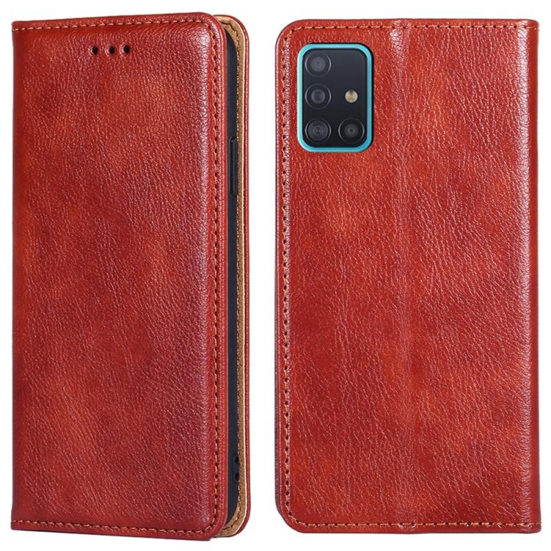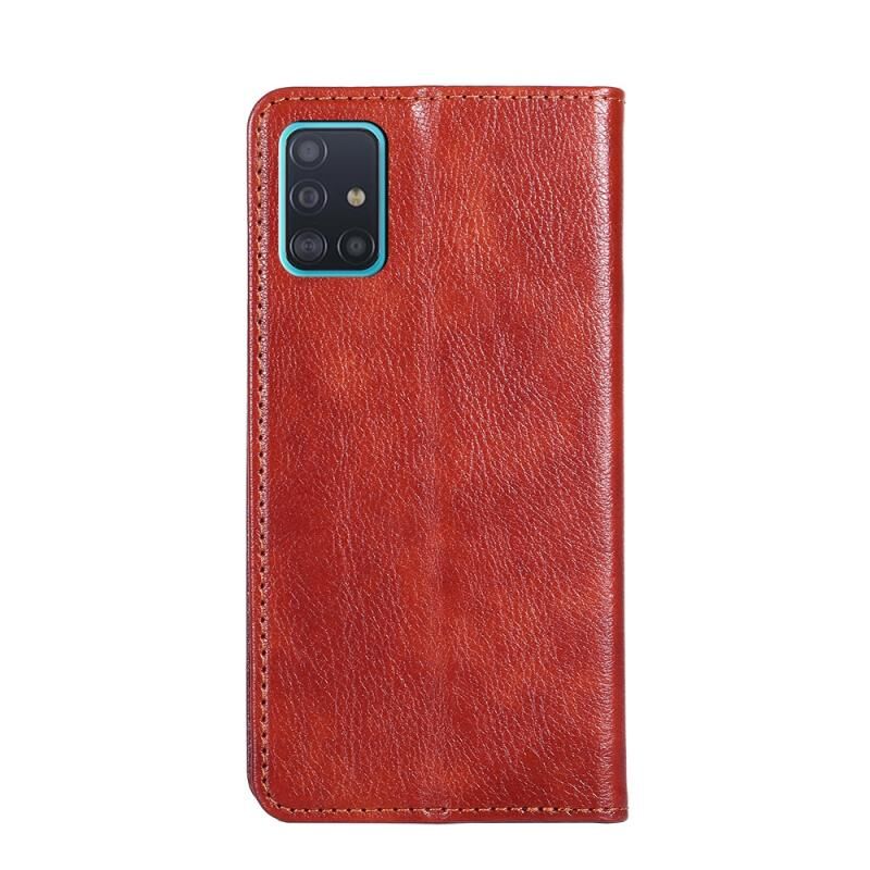 Για Samsung Galaxy A51 4G PU + TPU γυαλιστερό λάδι στερεό χρώμα μαγνητική οριζόντια Flip δερμάτινη θήκη με υποδοχή & υποδοχή κάρτας & πορτοφόλι (καφέ)