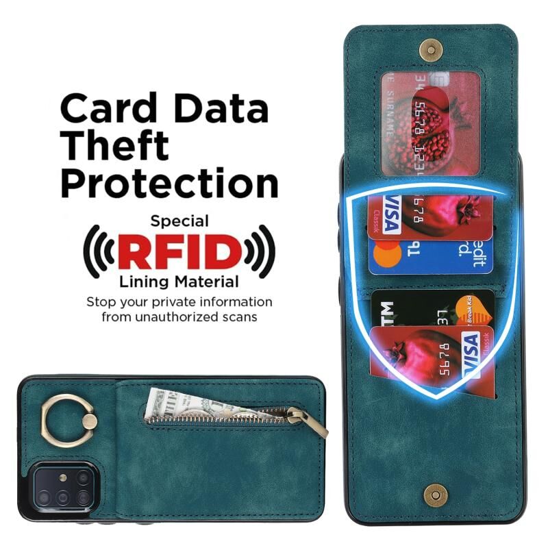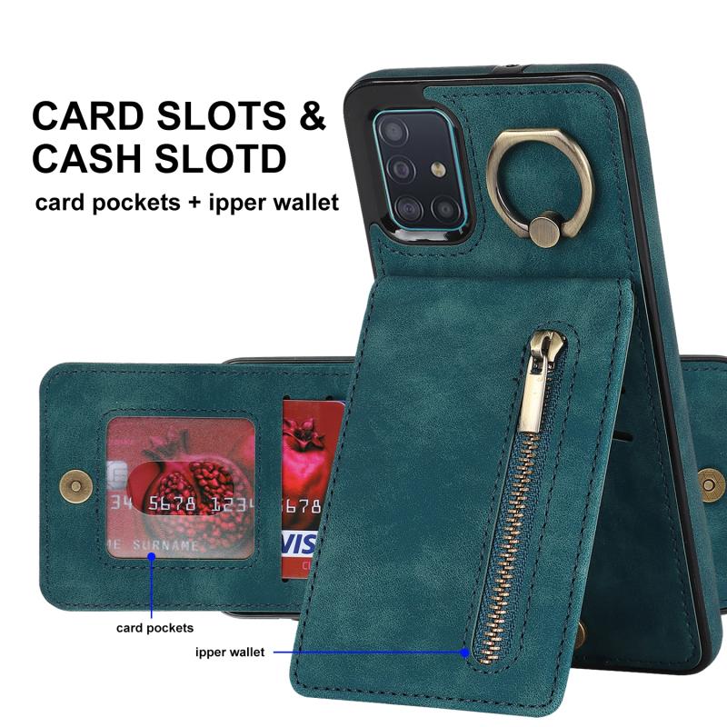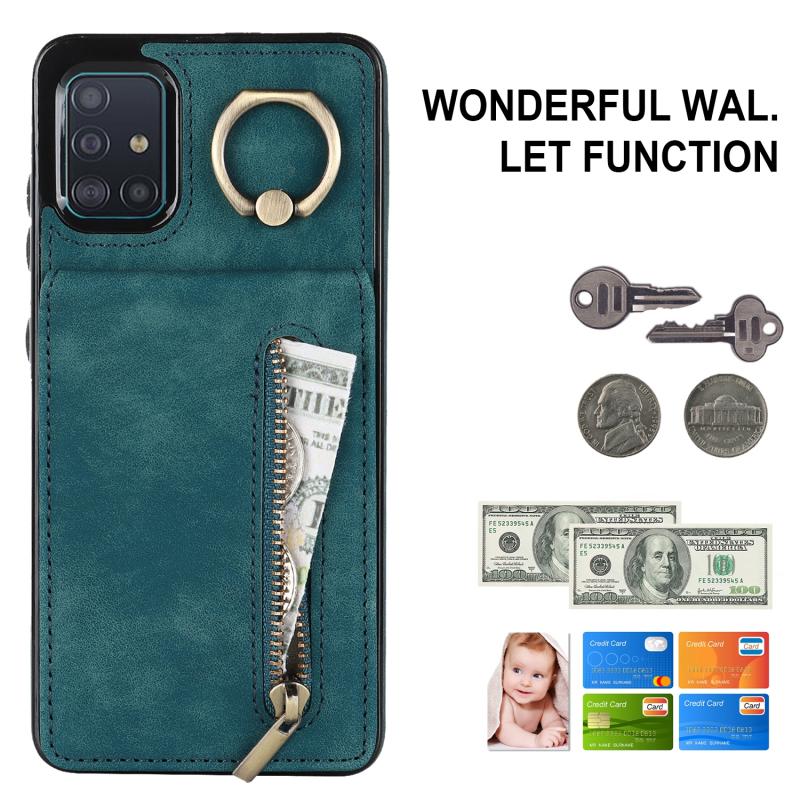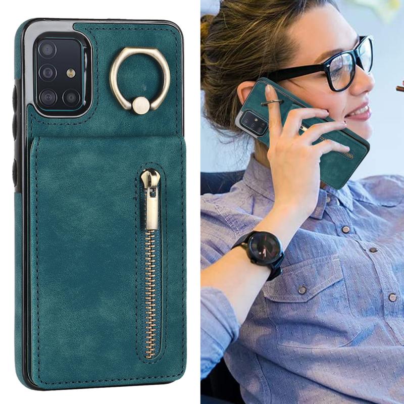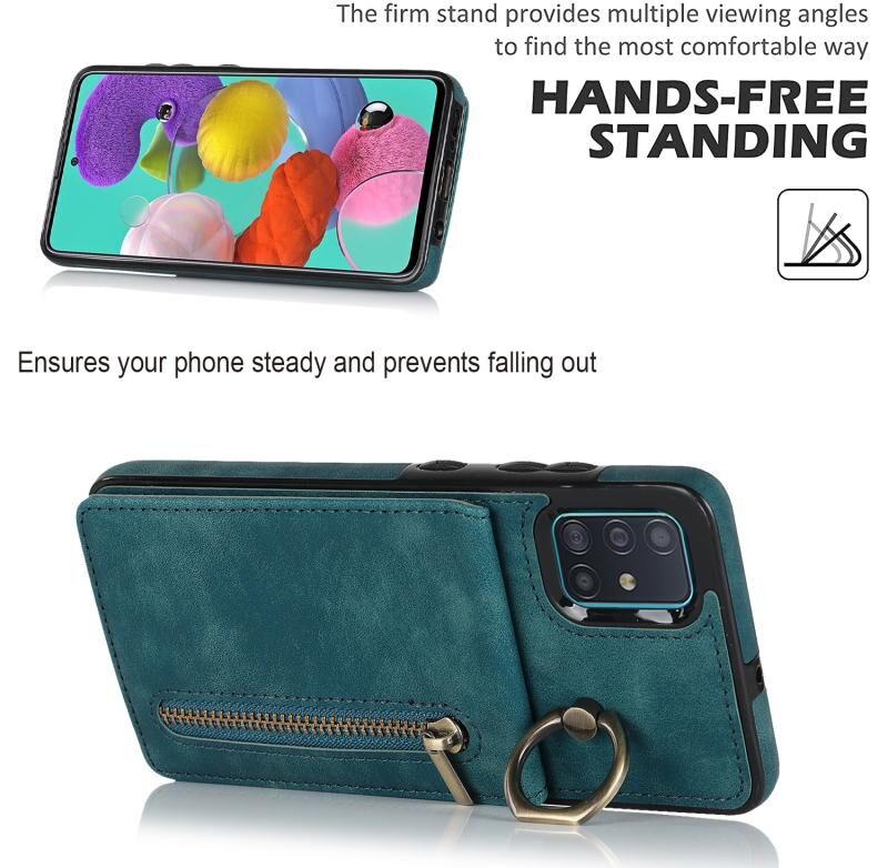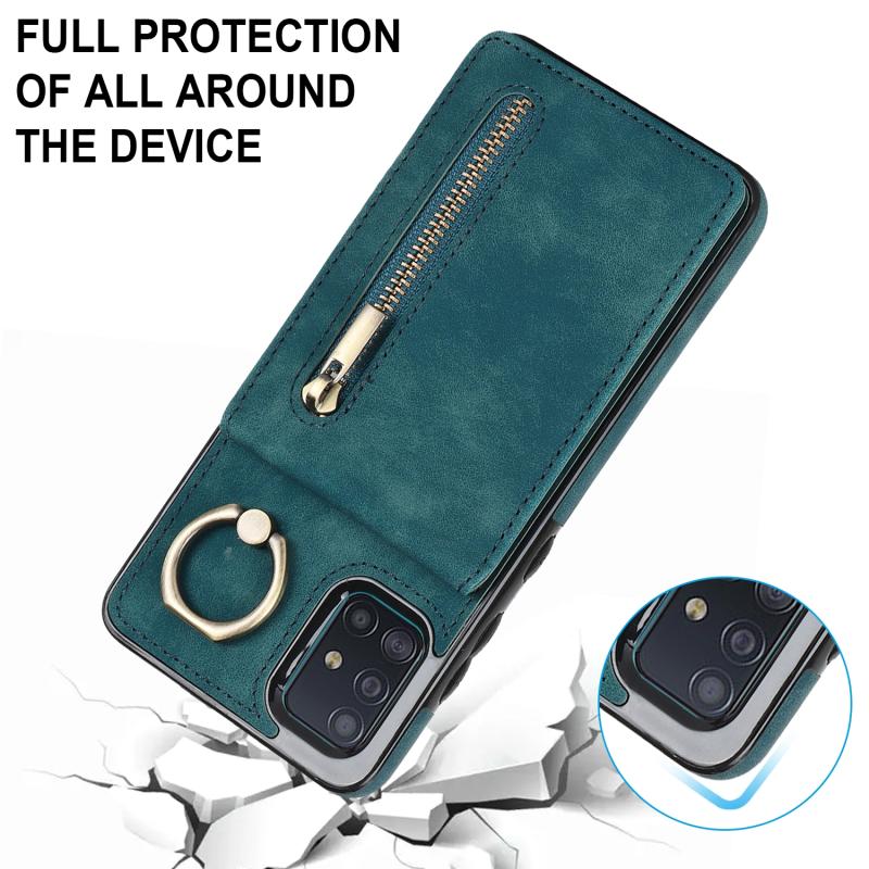Θήκη κινητού τηλεφώνου Samsung Galaxy A51 4G Retro με δακτύλιο και φερμουάρ, θήκη καρτών RFID (Μπλε)
