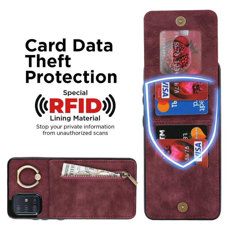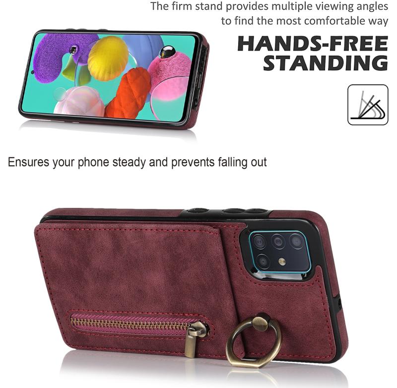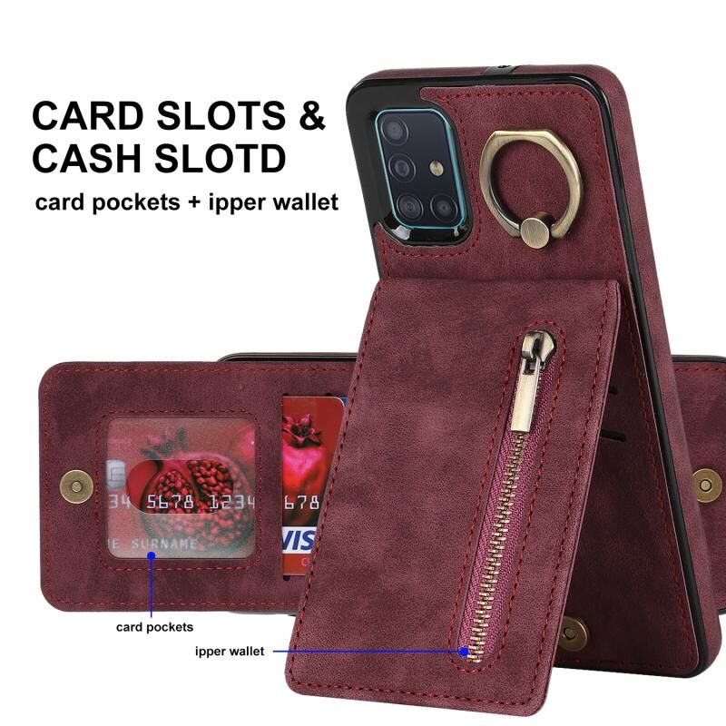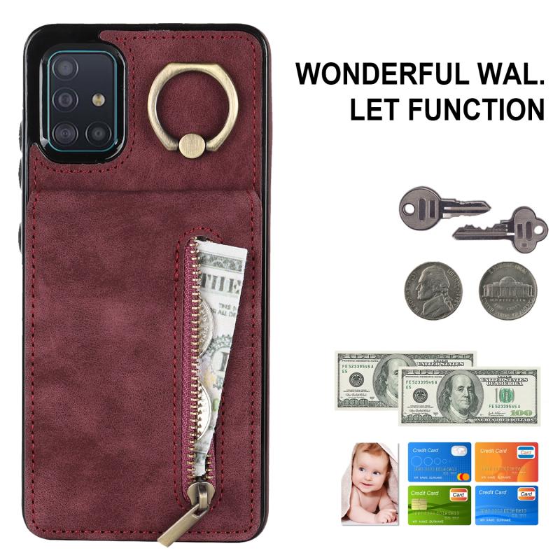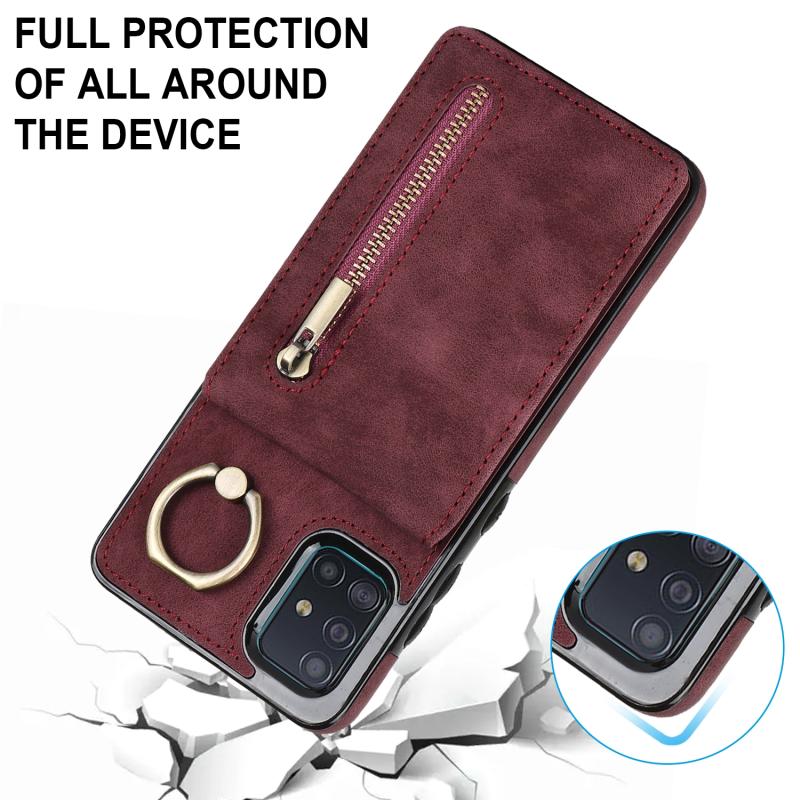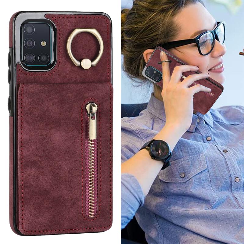 Θήκη κινητού τηλεφώνου Samsung Galaxy A51 4G με ρετρό δακτύλιο και φερμουάρ, θήκη καρτών RFID (Κρασοκόκκινο)