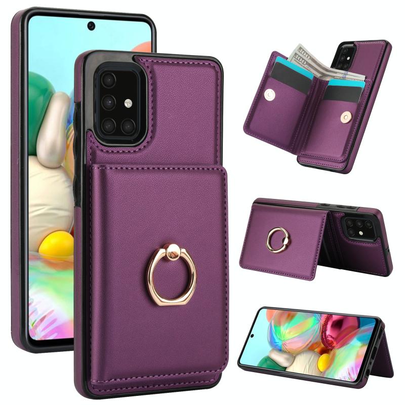 For Samsung Galaxy A51 4G RFID Anti-theft Card Ring Holder Phone Case(Dark Purple)