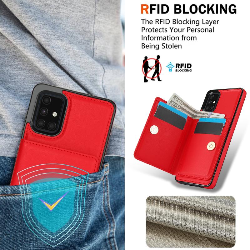 For Samsung Galaxy A51 4G RFID Anti-theft Card Ring Holder Phone Case(Red)